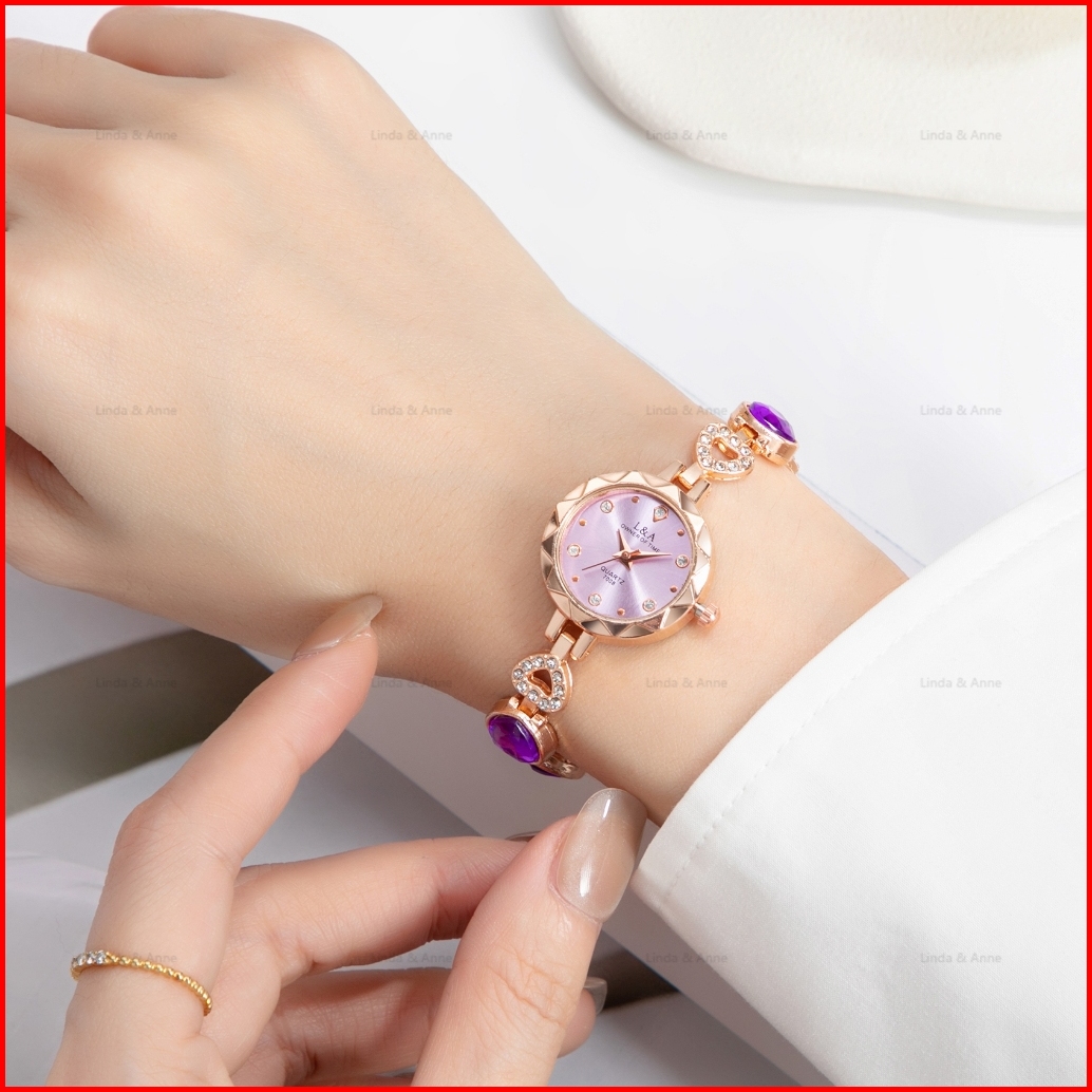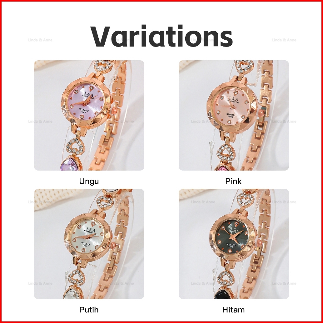 L A Jam Tangan Wanita Mewah Elegan Crystal Love Diamond Jam Tangan Cewek Stainless Steel