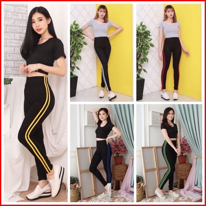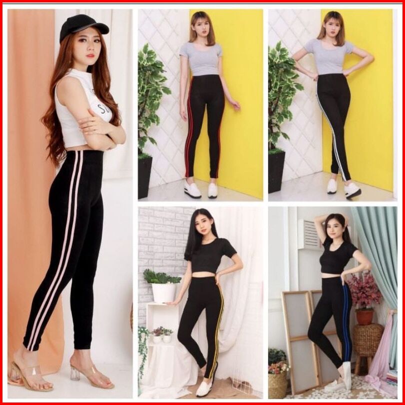 Celana Legging Strip Warna Highwaist Leging List Samping Lejing Hitam Lis Jahit