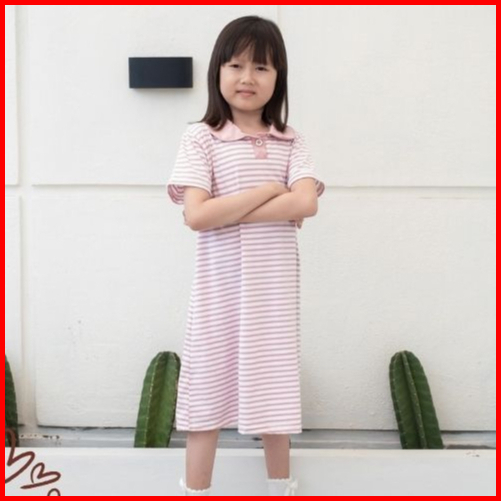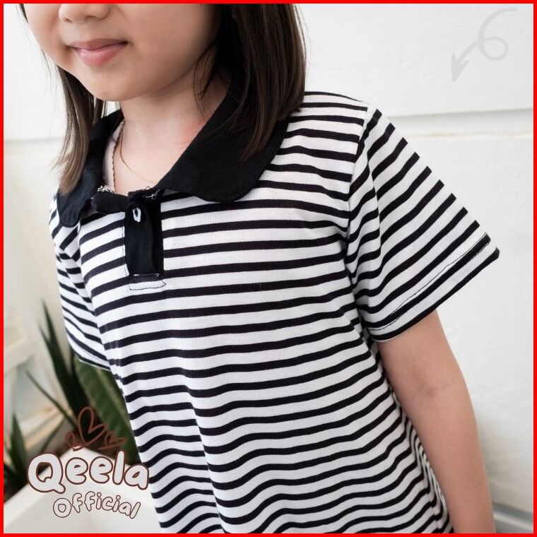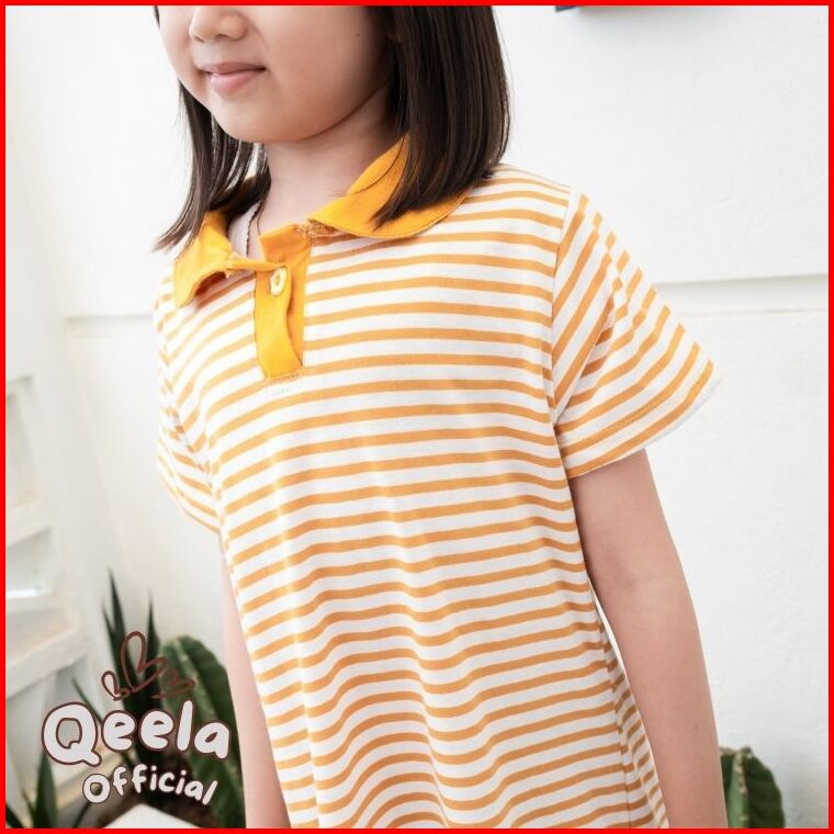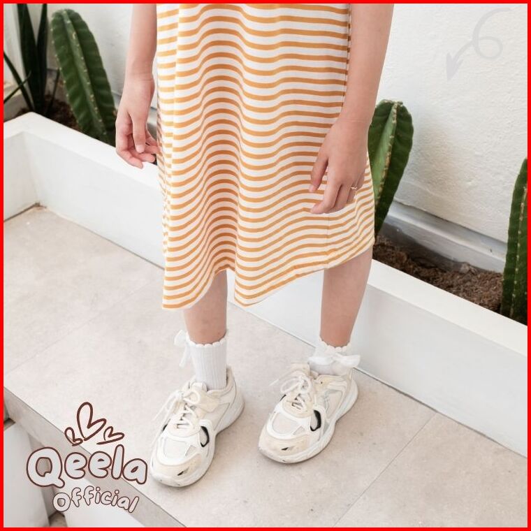 Qeelaofficial - Dress Anak Motif Salur 2-8 Tahun