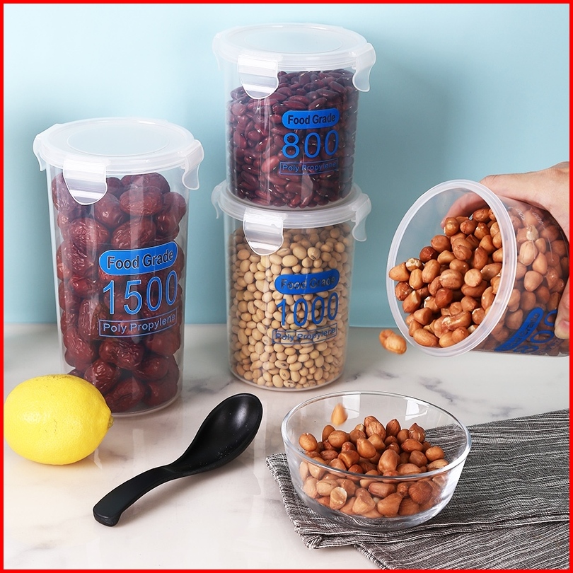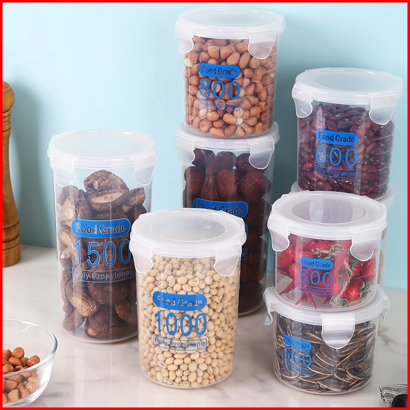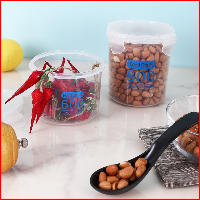 Voova Tangki Tertutup Melingkar Toples Plastik Toples Plastik Bening 600 800 1000 1500ml