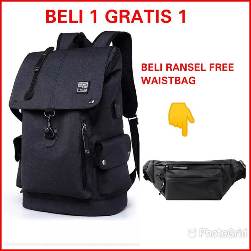 Js Buy 1 Get 1 - Tas Ransel Pria Beli Ransel Punggung Backpack Cowok Free Waistbag