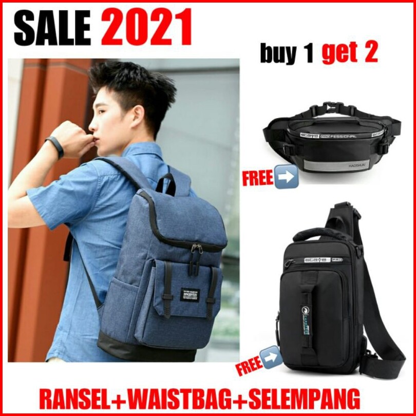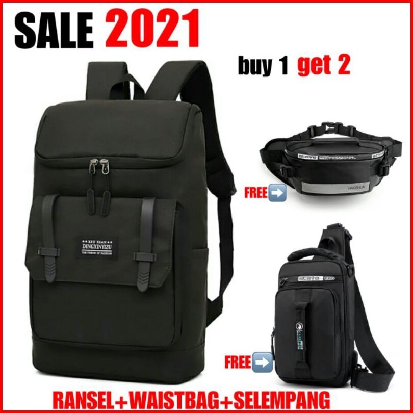 Buy 1 Get 2 - Tas Ransel Kanvas Pria Tas Punggung Gendong Tas Terbaru Tas Sekolah Kuliah Kapasitas B