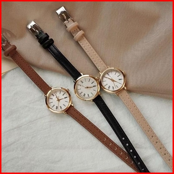 Pa Jam Tangan Quartz Strap Pu Analog Casual Gaya Retro Wanita Bulat Watch Korean Fashion Rm027