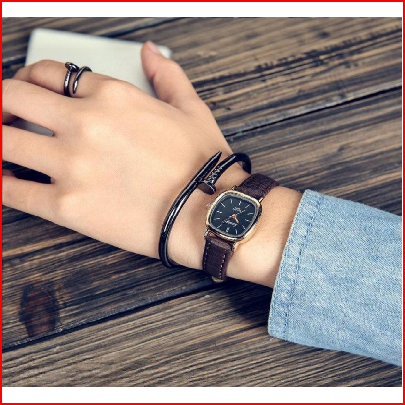 Pa Jam Tangan Wanita Pria Couple Polos Casual Dial Segi Fashion Analog Quartz Simple Strap Kulit Pu Leather Rm001