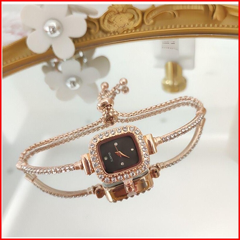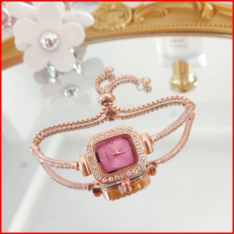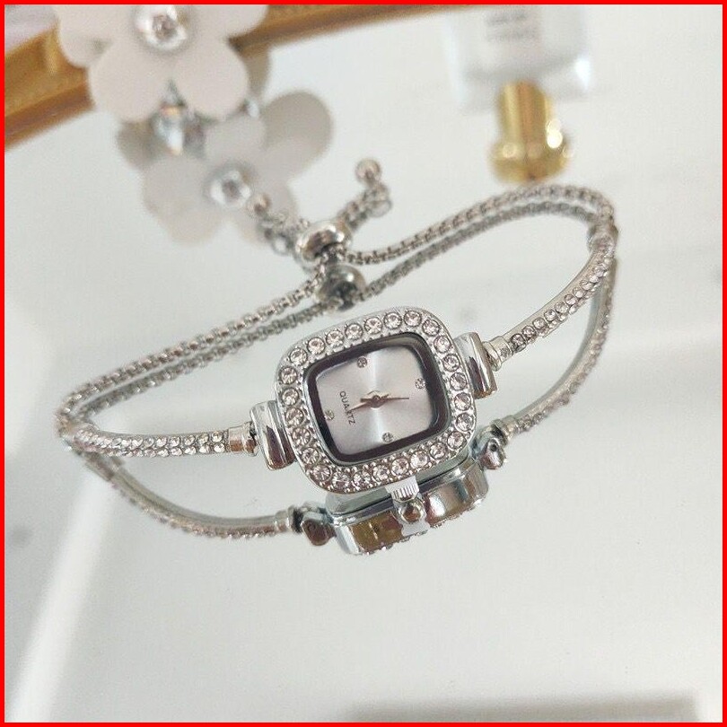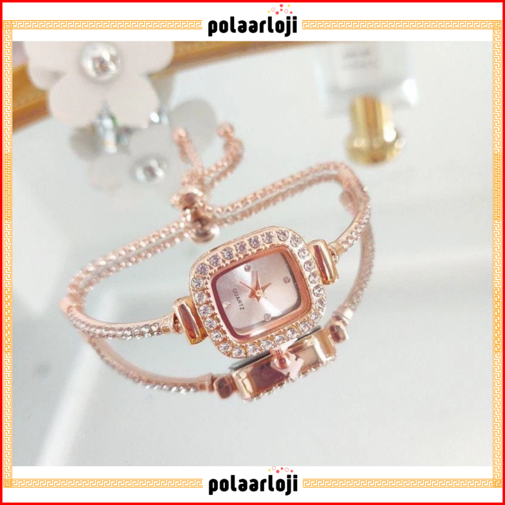 Pa Jam Tangan Serut Mewah Gelang Serut Wanita Analog Quartz Adjustable Anti Air Rantai Stainless Steel Diamond Fashion R