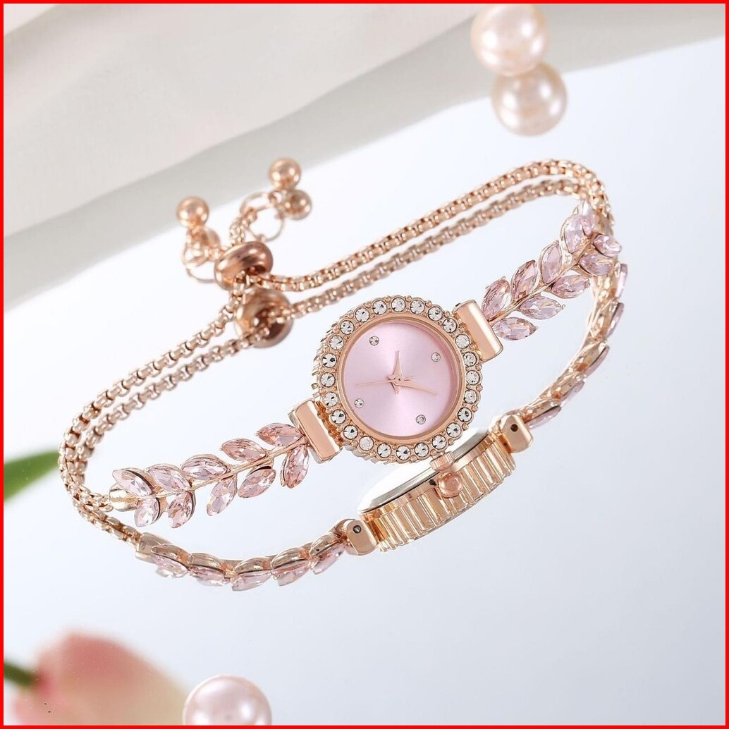 Pa Jam Tangan Serut Mewah Gelang Serut Wanita Analog Quartz Adjustable Anti Air Rantai Stainless Steel Diamond Fashion R