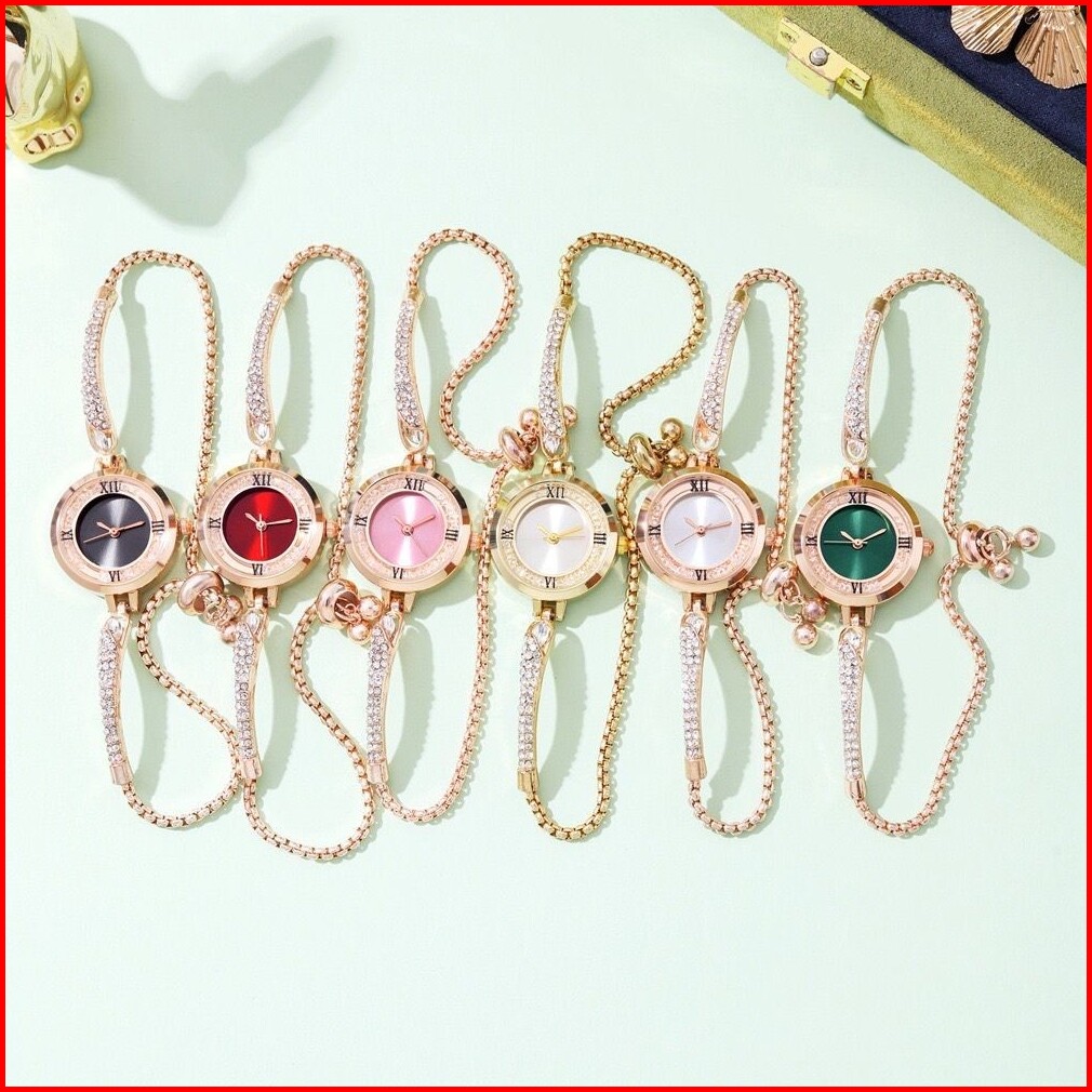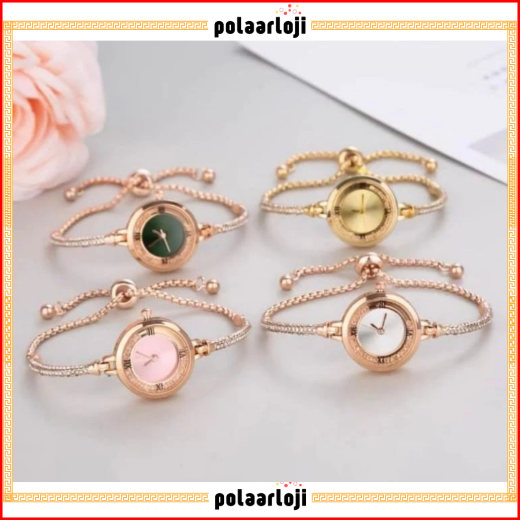 Pa Jam Tangan Serut Mewah Gelang Serut Wanita Analog Quartz Adjustable Anti Air Rantai Stainless Steel Diamond Fashion R