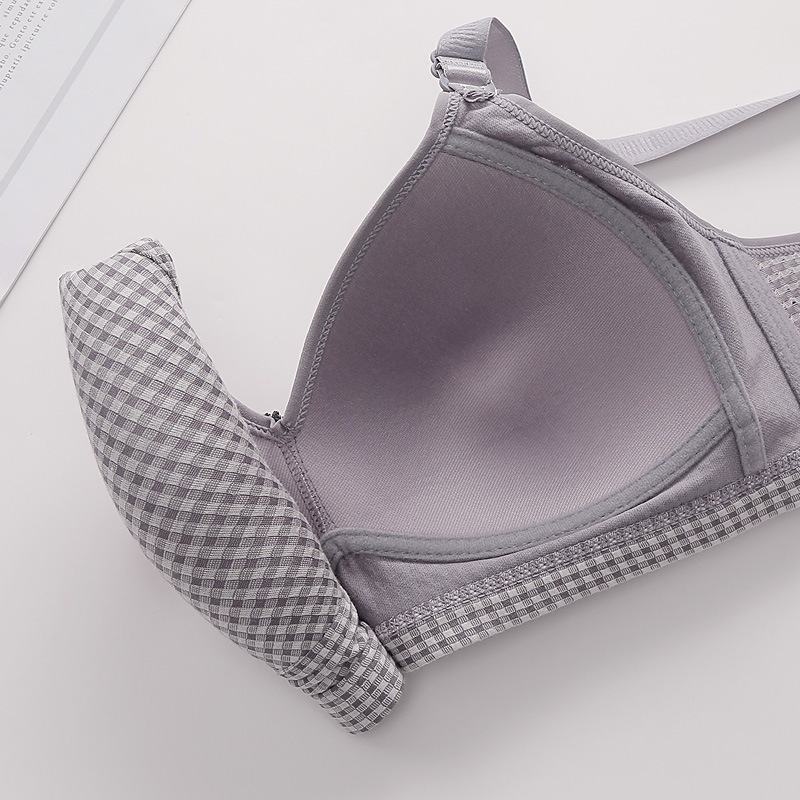 (ISI 5) Feminin Bra Wanita Push Up Cup Besar Bh Big Size Tali Tebal Tanpa Kawat Elastis Bra Jumbo Motif Kotak Terjangkau