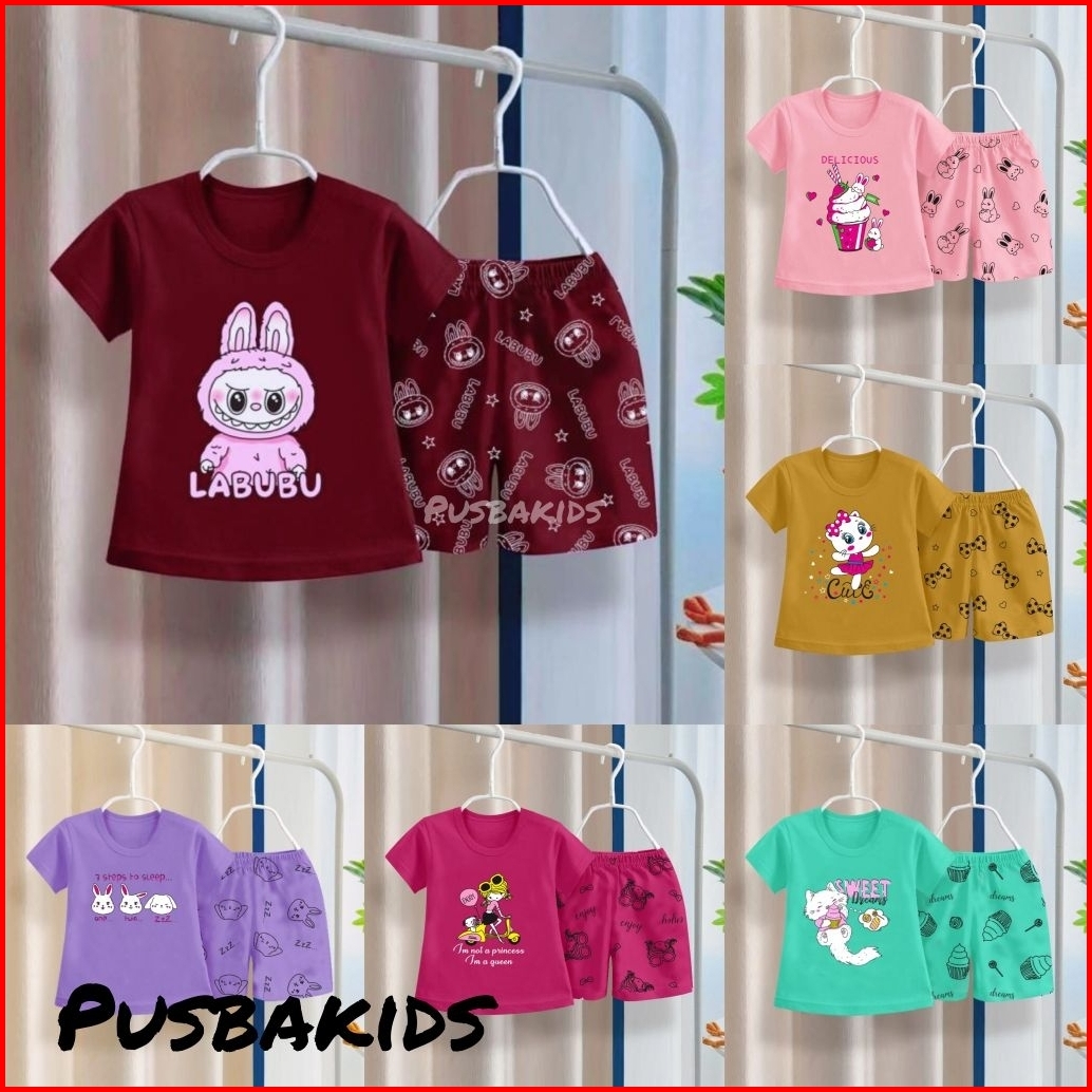 Pusbakids - Set Baju Anak Cewek Labubu Setelan Anak Perempuan Labubu Kuromi