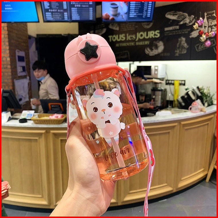 Btl004 Botol Air Minum Transparan Botol Tutup Flip Sedotan Motif Kartun