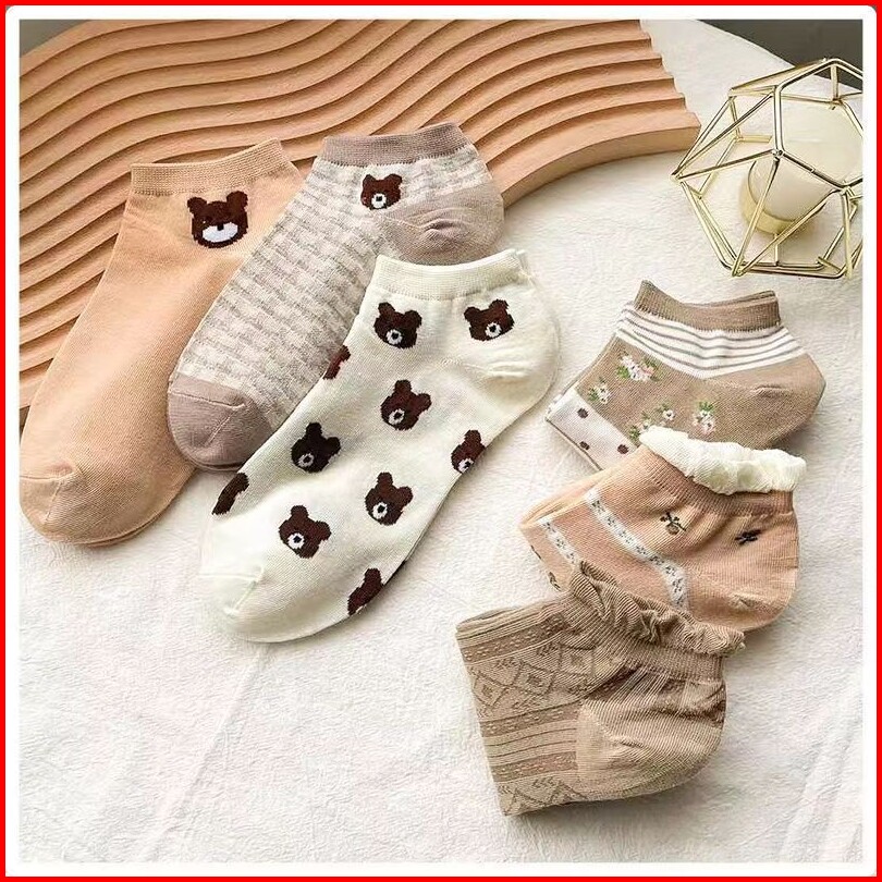 Ks119 Kaos Kaki Wanita Motif Love Bear Coklat Kaos Kaki Pendek Wanita Semata Kaki