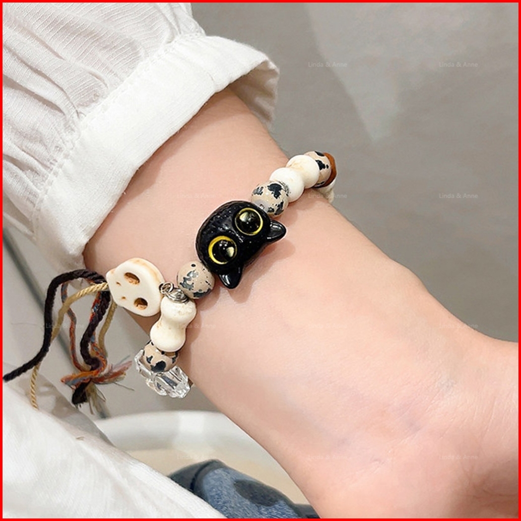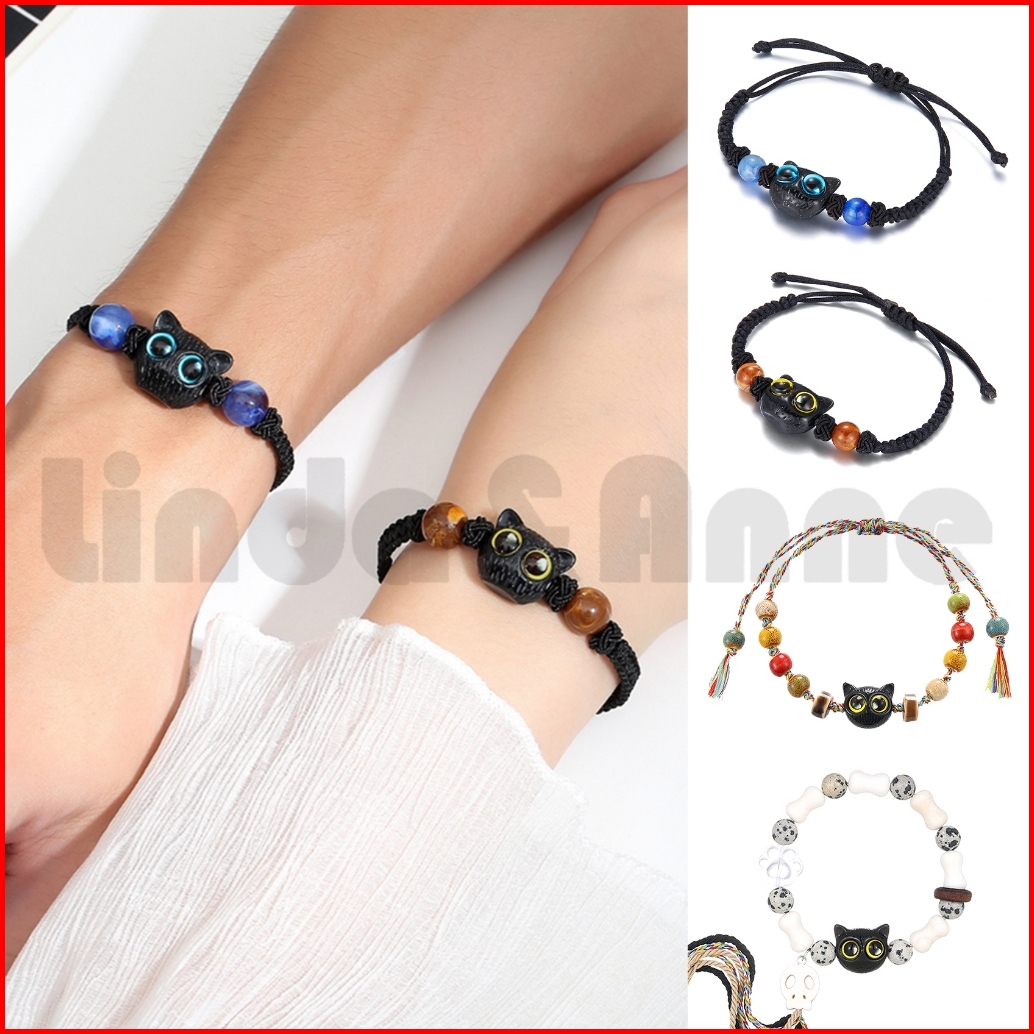 L A Gelang Couple Motif Kucing Hitam Black Cat Lucu Aksesoris Gelang Persahabatan Pria Wanita