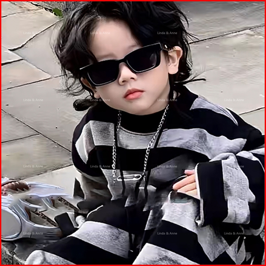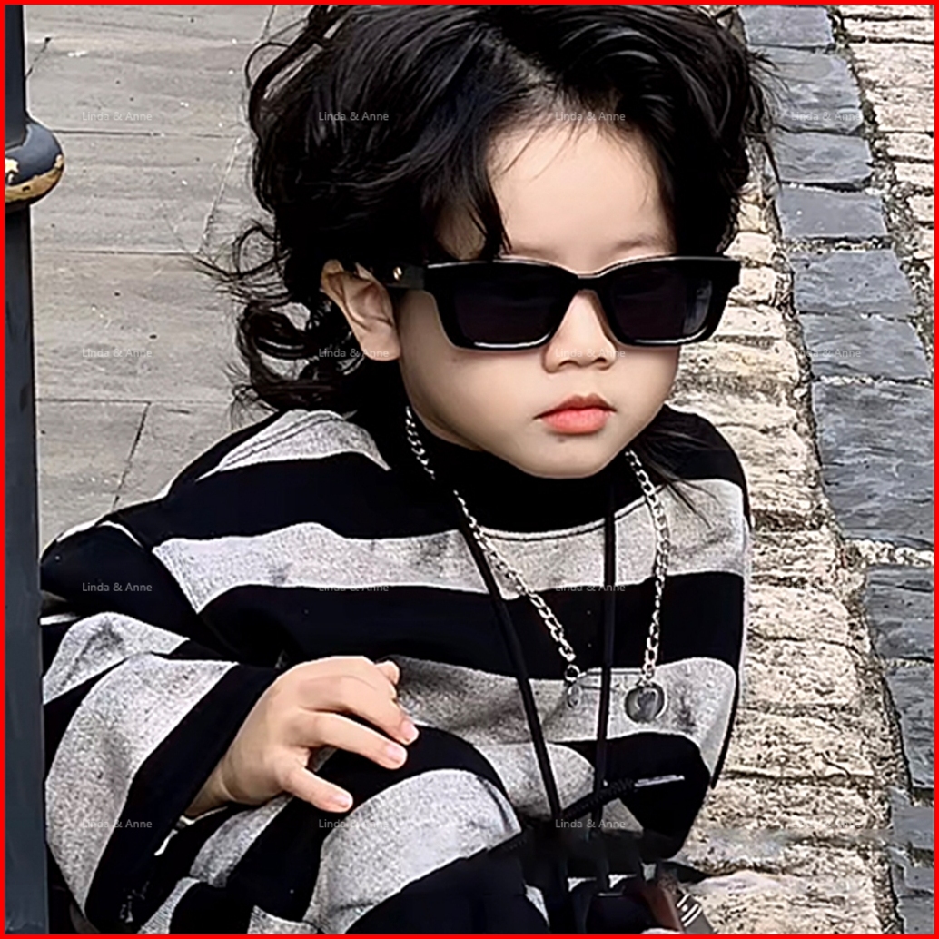 L A Kacamata Hitam Anak Gaya Retro Kids Sunglasses Frame Persegi Fashion Trendy