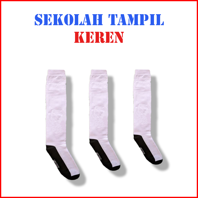Kaos Kaki Sekolah Long Hitam Putih Katun Premium