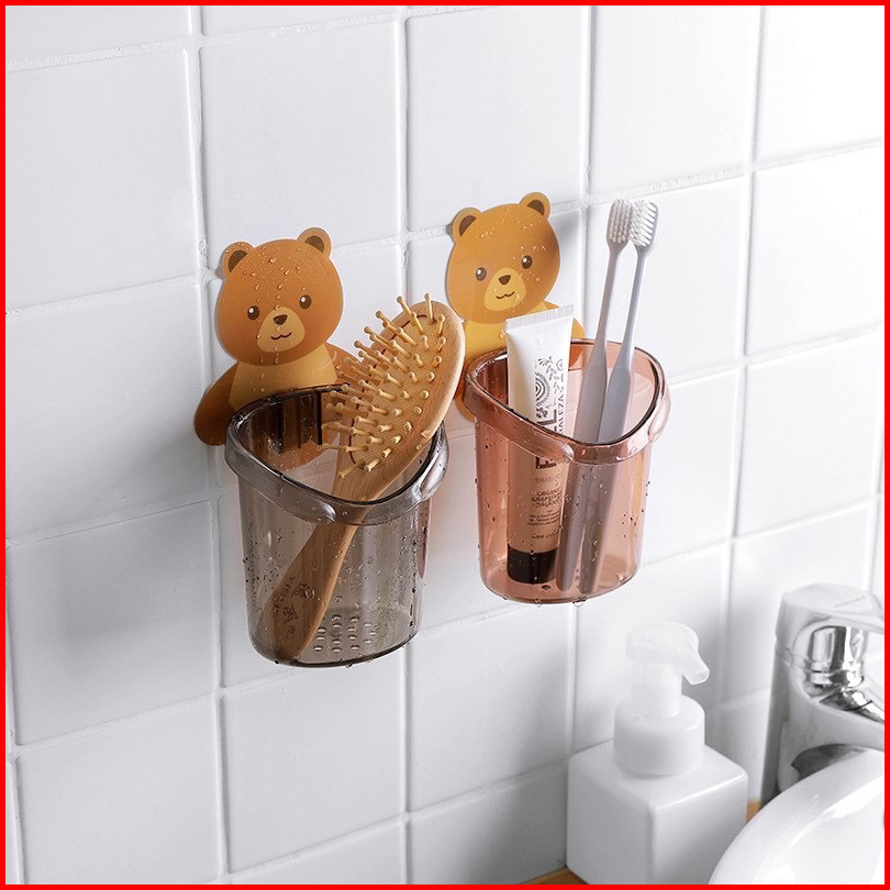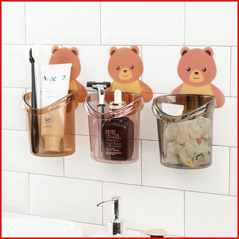 Tempat Sikat Gigi Tempel Motif Beruang Rak Tempel Sikat Gigi Dispenser Odol Rak Kamar Mandi Wadah Sikat Gigi Tempel Rak
