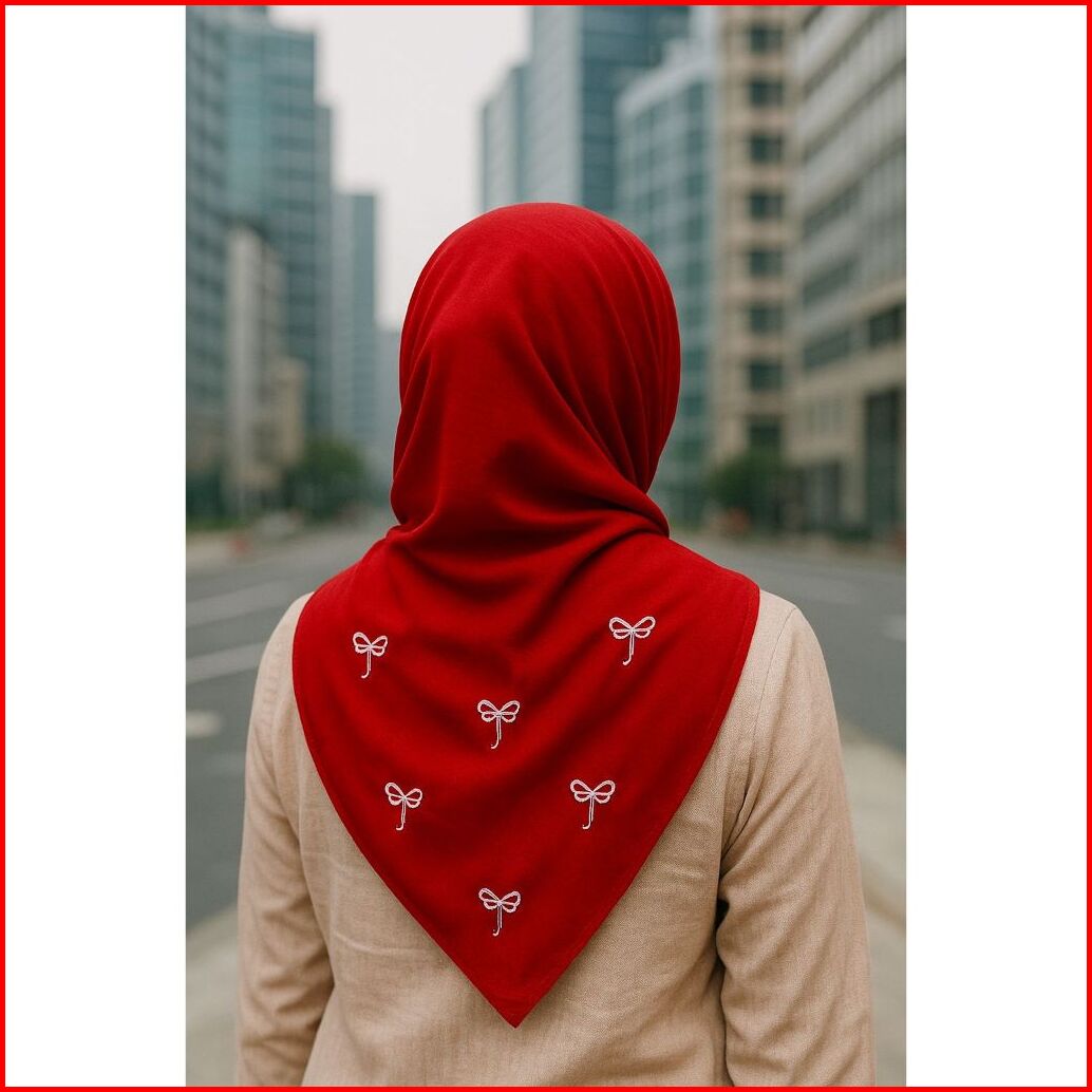 Jilbab Paris Bordir Pita Coquette Merah Putih Dengan Pouch Hijab Paris Bordir Merah Putih