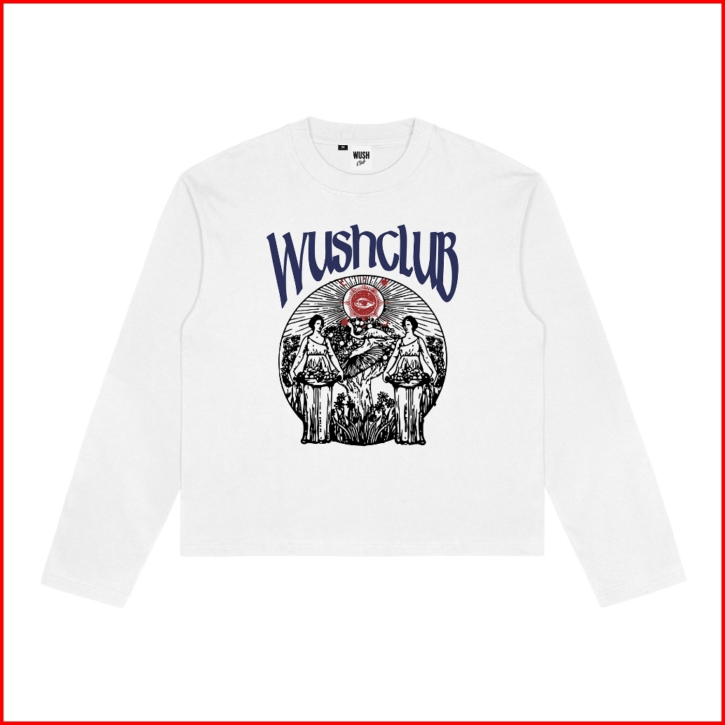 Wush Club Baju Kaos Boxy Longsleeve Pria Wanita Oversize Lengan Panjang Hera Putih