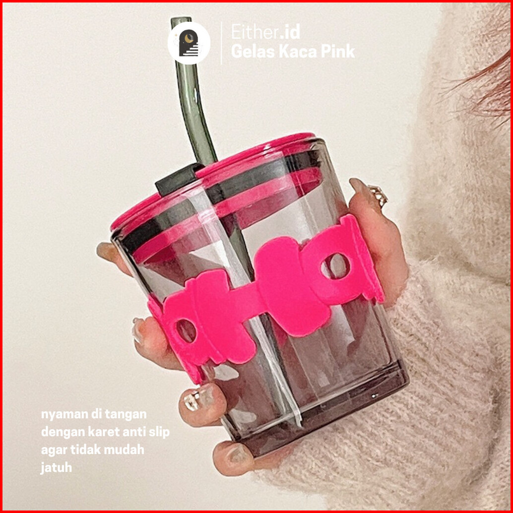 Either.id - Gelas Tumbler Aesthetic Gelas Minum Kaca Simple Elegan Black Pink Cup For Coffee