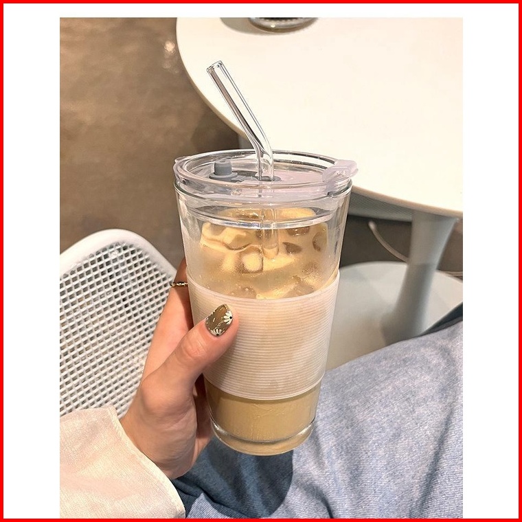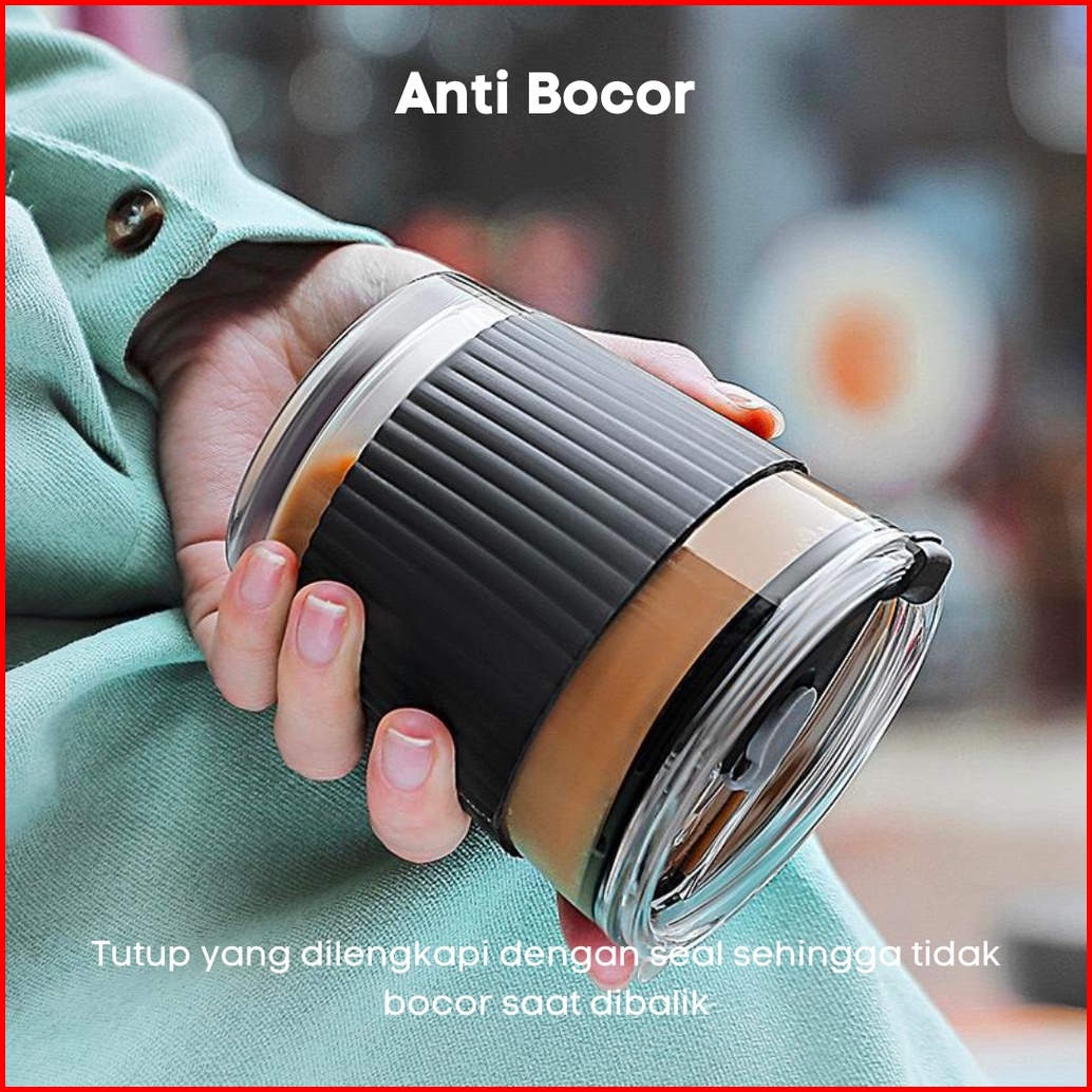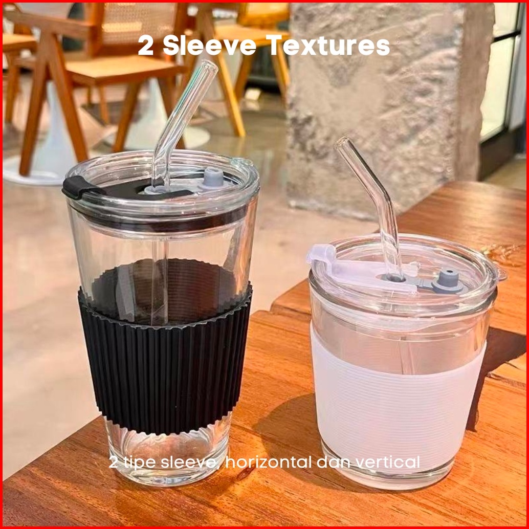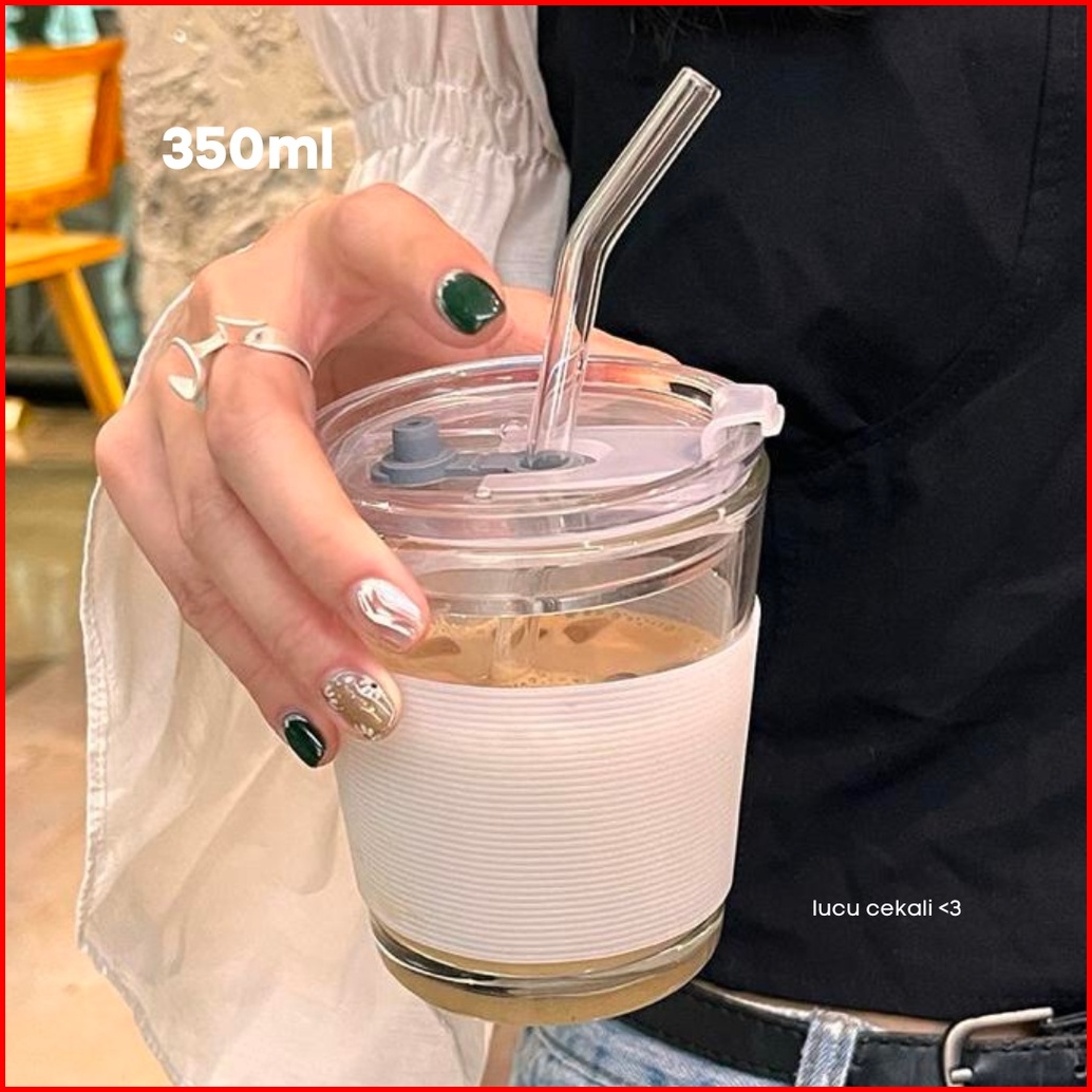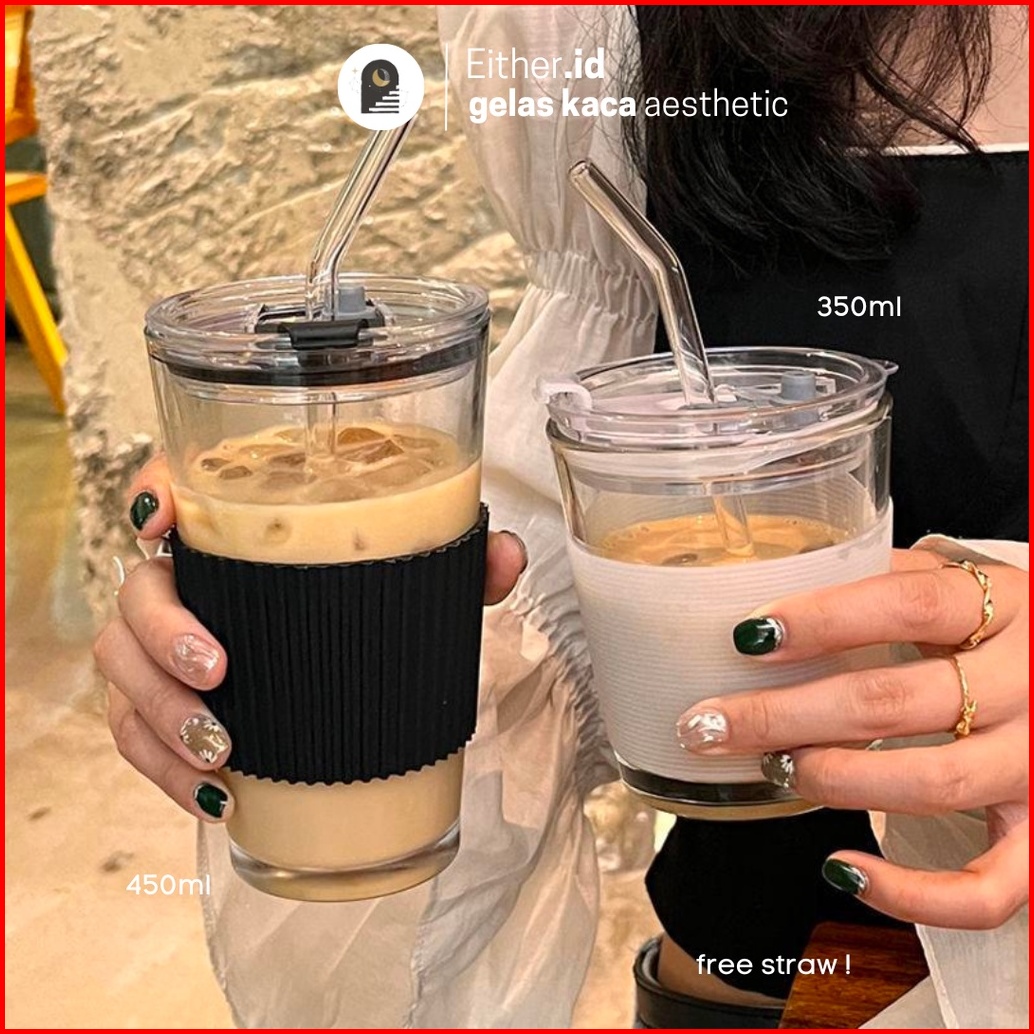 Either.id - Tumbler Kopi Kaca Estetik Free Sedotan Kaca Dan Sillicone Holder Coffee Aesthetic