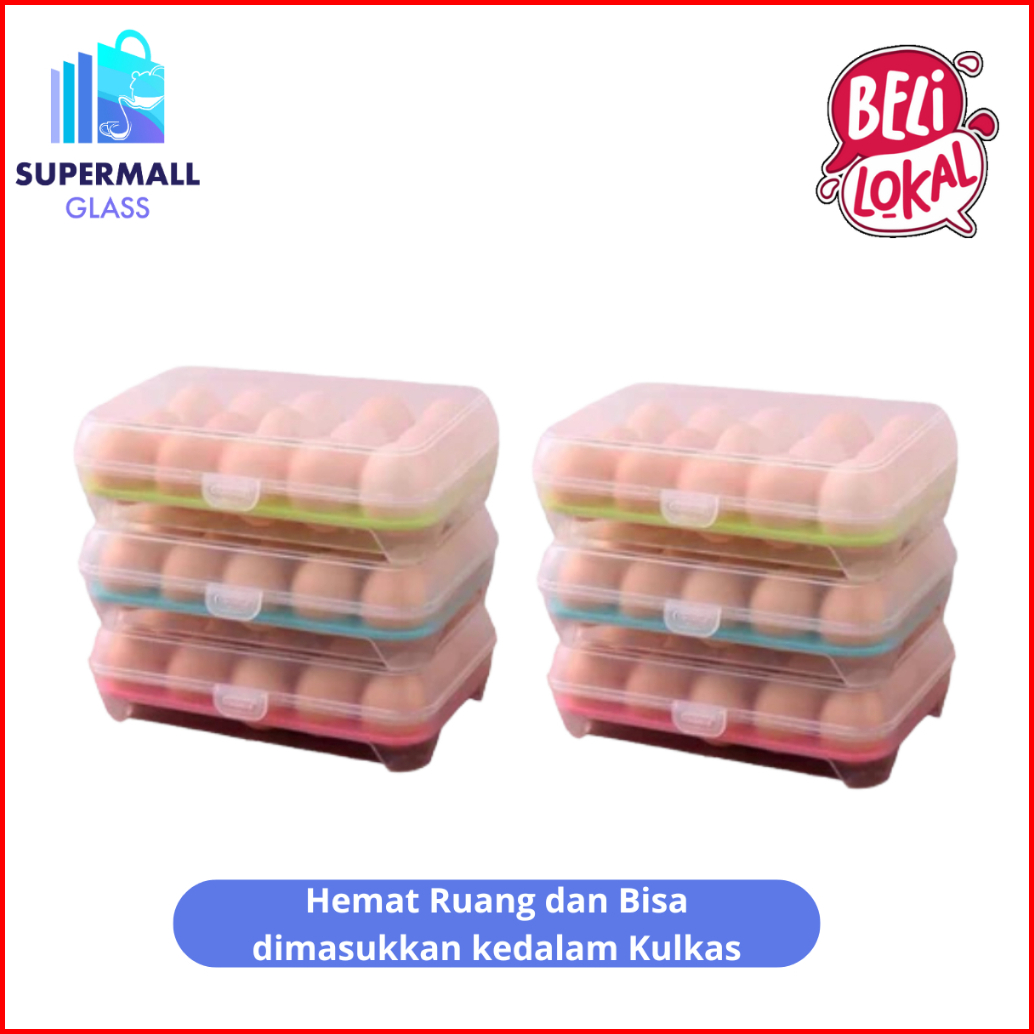 Supermall Glass Box Telur 15 Sekat Portable Egg Box Tempat Kotak Telur Serbaguna 1kg 10 Pcs