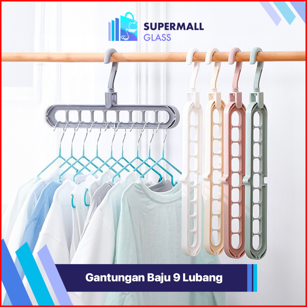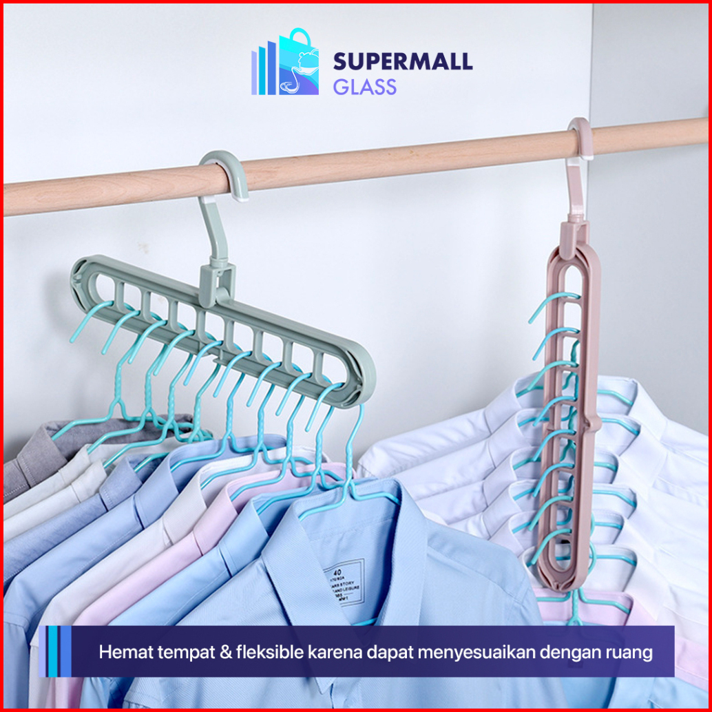 Supermall Glass Gantungan Baju 9 Lubang Magic Hanger Jemur Baju Efisien Tempat Pakaian Ajaib