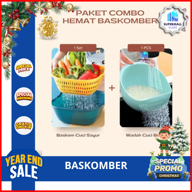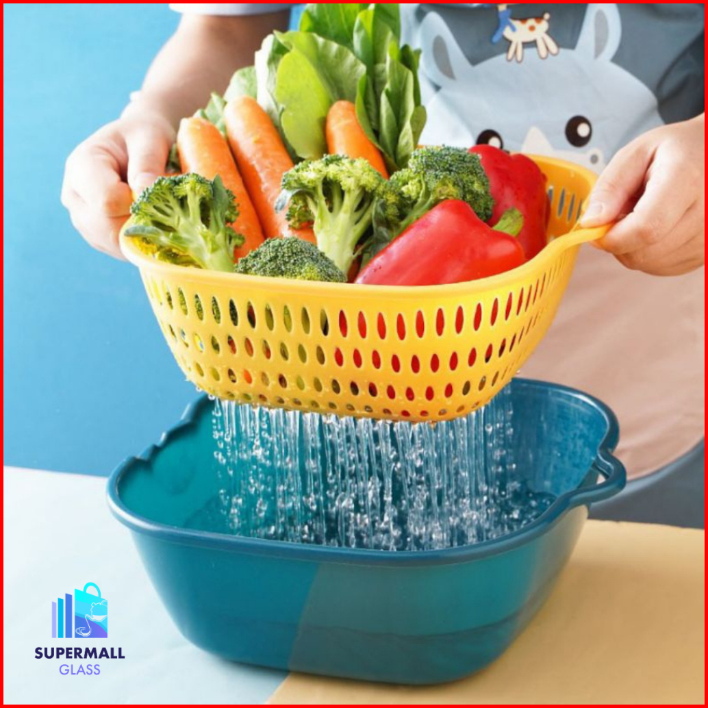 Super Mall Paket Combo Hemat Baskom Cuci Sayur Wadah Beras Tempat Cucian Sayur - Sayuran