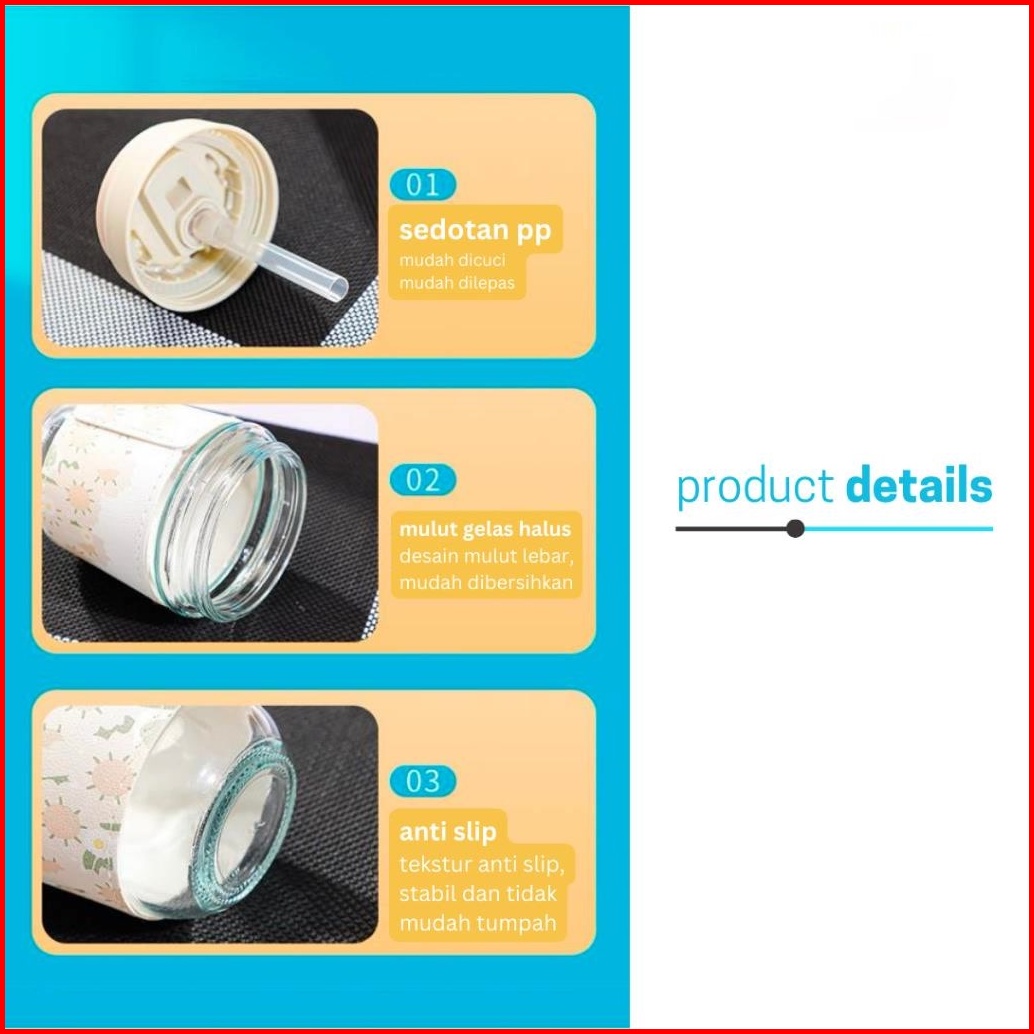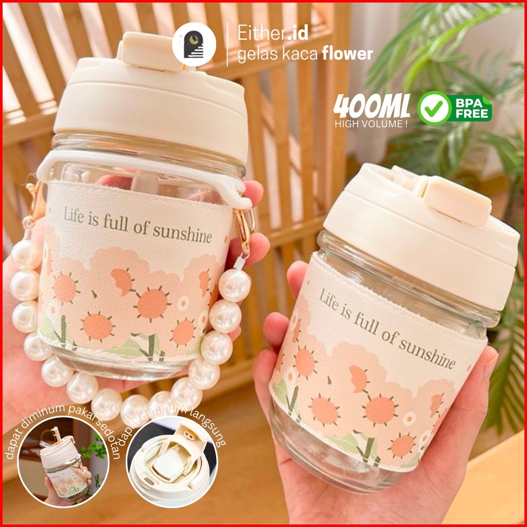 Either.id - Gelas Tumbler Botol Minum Aesthetic Gelas Minum Kaca Simple Elegan Water Bottle Cup For Coffee