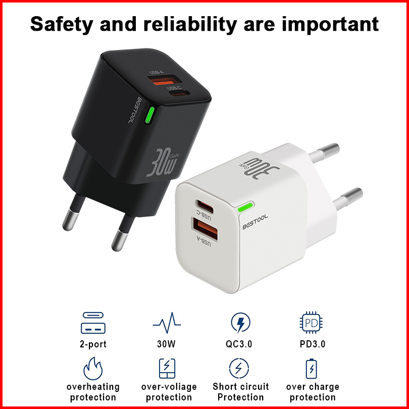 Bestool Kepala Charger Pd Type C Gan Charger Fast Charging 20w 30w Eu
