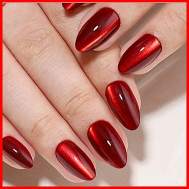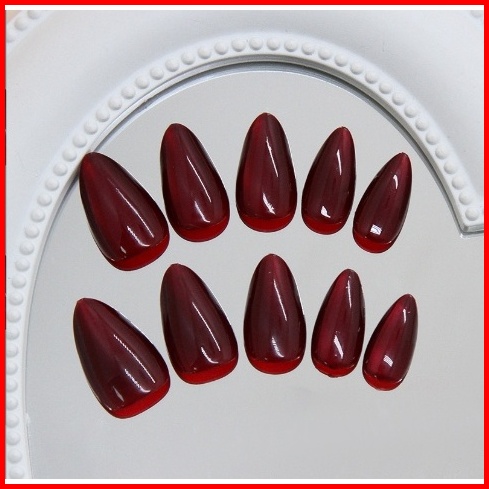 Kuku Palsu Cat Eye Super Short Pendek Merah Maroon Isi 15 Dus Lem