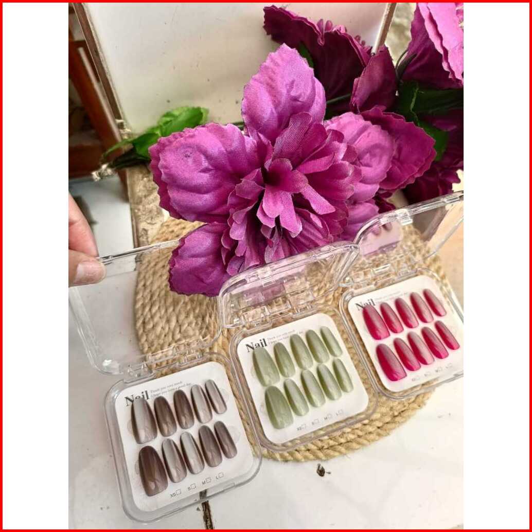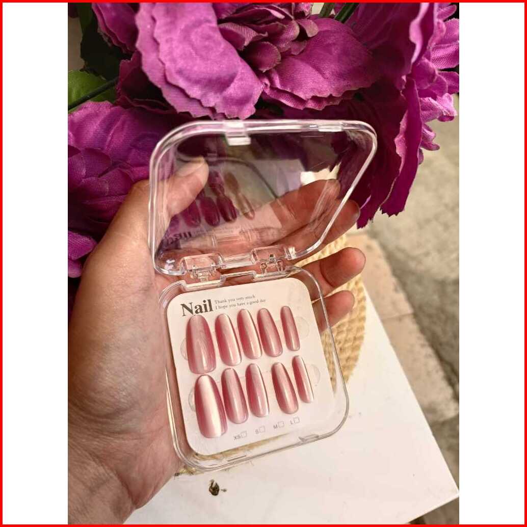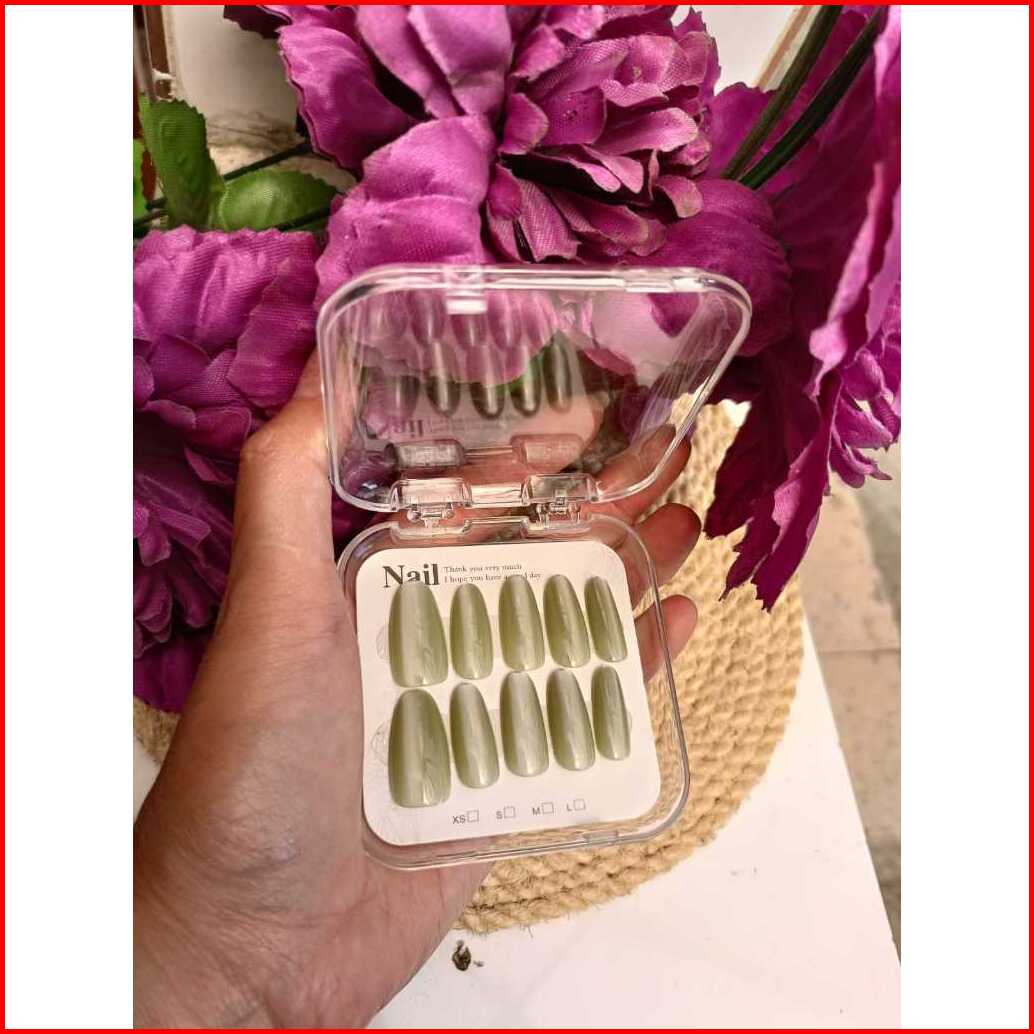 Kuku Palsu Isi 10 Cat Eye Lonjong Sedang Lentik Lengkap Dengan Dus Lem