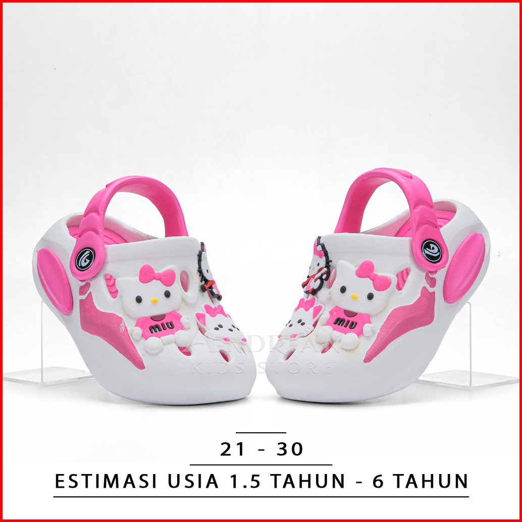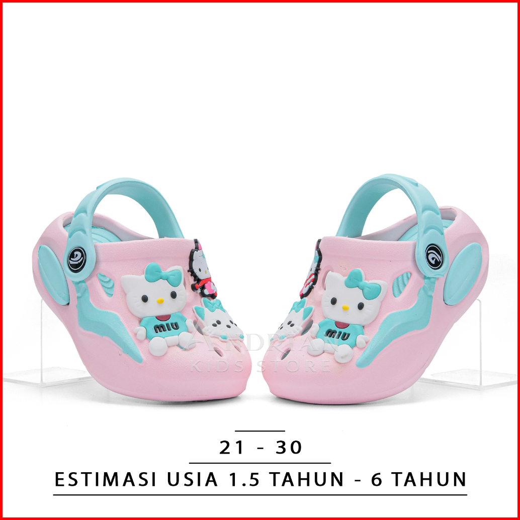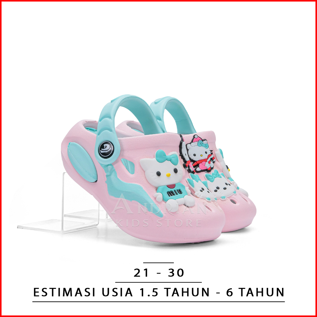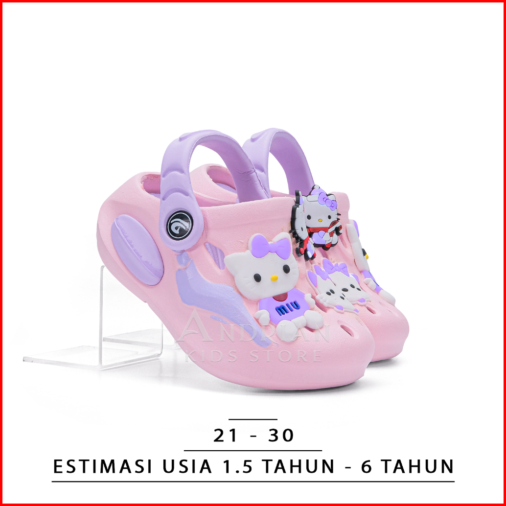 Sandal Anak Perempuan Model Baim Cute Dlx Sendal Kitty Tali Belakang Pink Ungu Pastel Gemoy 1-6 Tahun - Andrian Kids Sto