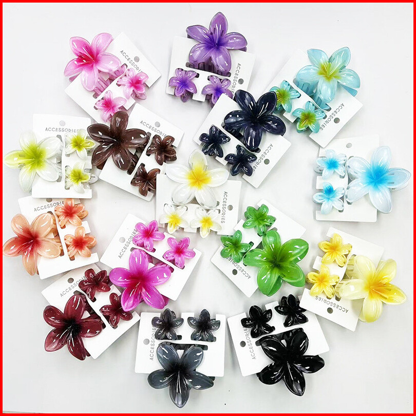 Acc236 Set Jepit Rambut Bunga Kamboja 3 In 1 Jedai Aksesoris Wanita Akrilik