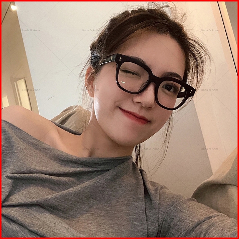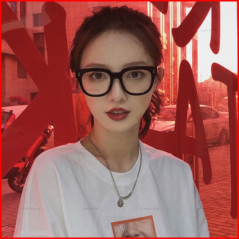 Kacamata Kotak Pria Wanita Anti Radiasi Lensa Bening Gradasi Aksen Dua Titik Square Glasses Accessoriess Fashion