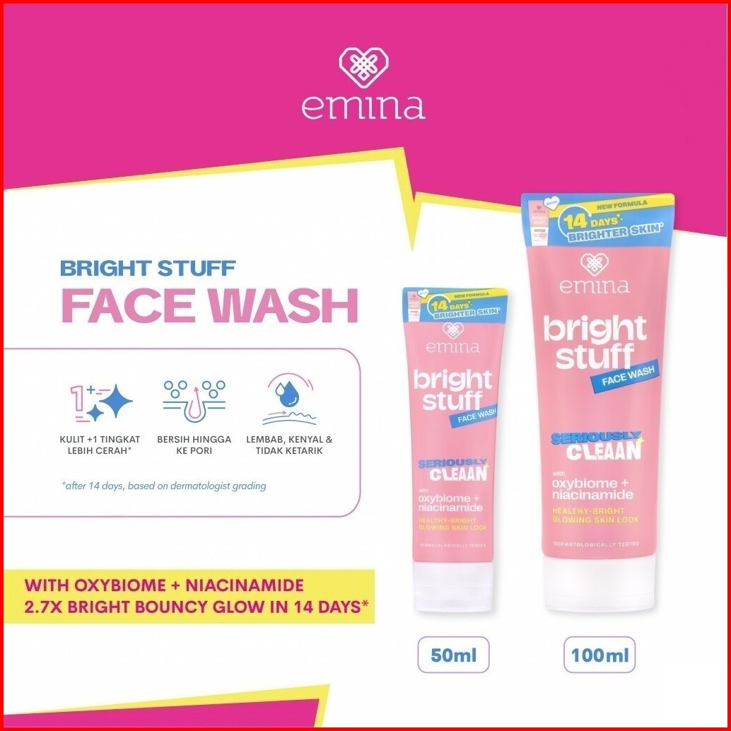 Emina Bright Stuff Face Wash 100ml - 50ml - Sabun Muka Cerah Glowing Anti Kusam Tnt Beauty Shop