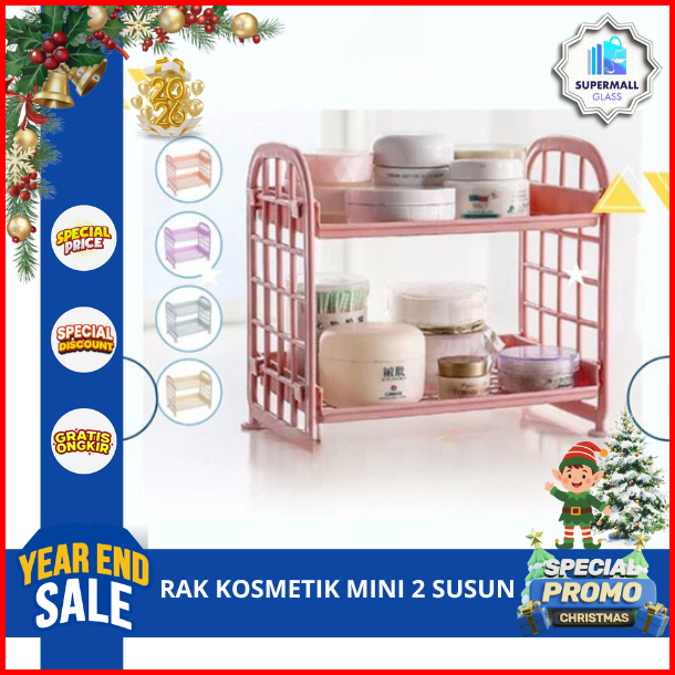 Sg Rak Mini 2 Susun Tingkat Tempat Penyimpanan Kosmetik Bumbu Dapur Peralatan Kamar Mandi