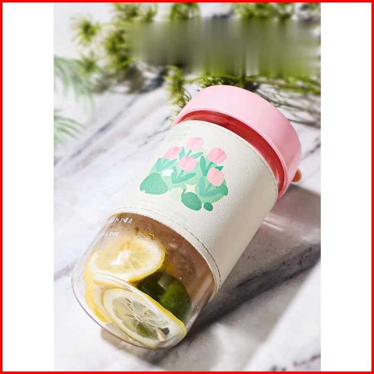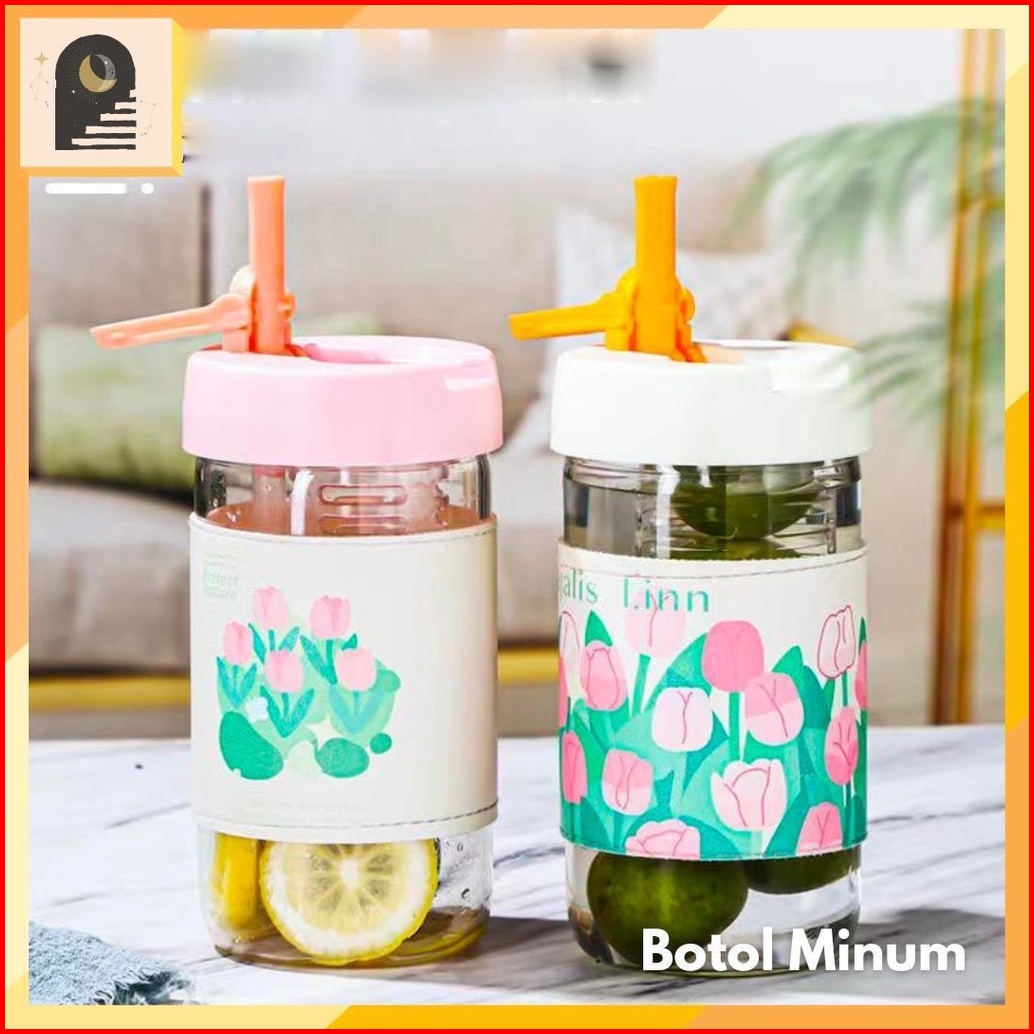 Either.id - Botol Kaca Tumbler Unik Motif Bunga Dengan Sedotan 550 Ml My Bottle Botol Minum Infused Water Gelas Kaca Vac