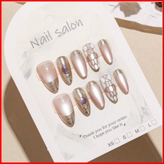 Kuku Palsu Sedang Lancip Nuansa Mewah Lengkap Dengan Lem