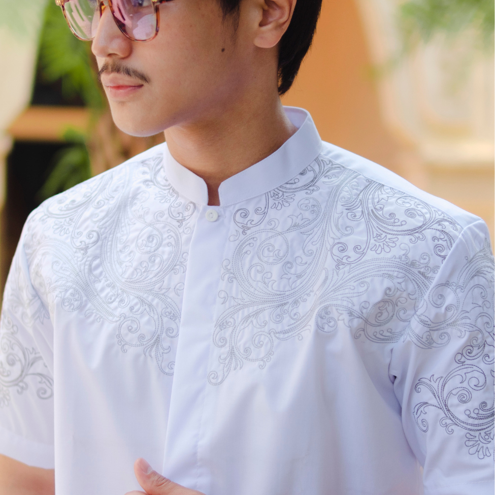 BASTOH Baju Koko Bordir Pria Khayri Lengan Pendek Putih