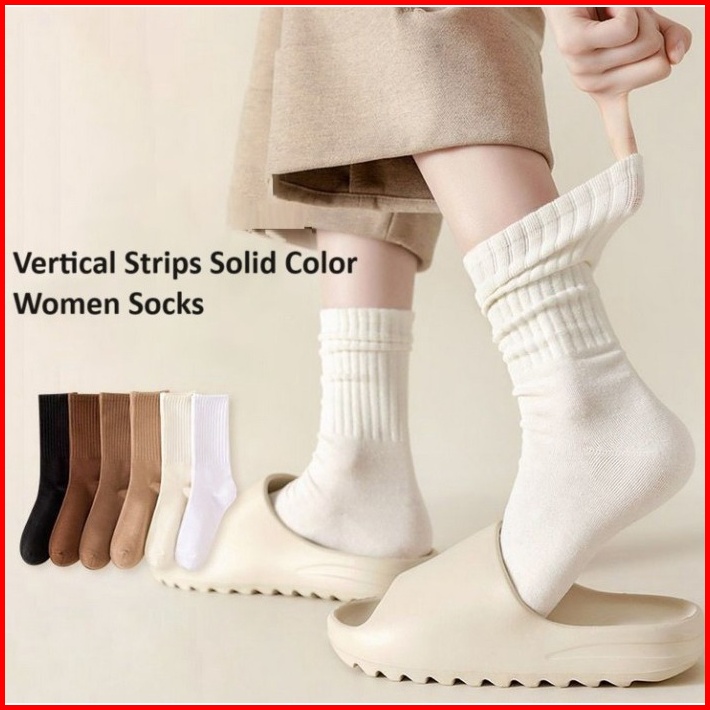 Ennwen Kk179 Kaos Kaki Panjang Wanita Vertical Stripes Solid Color Women Sock