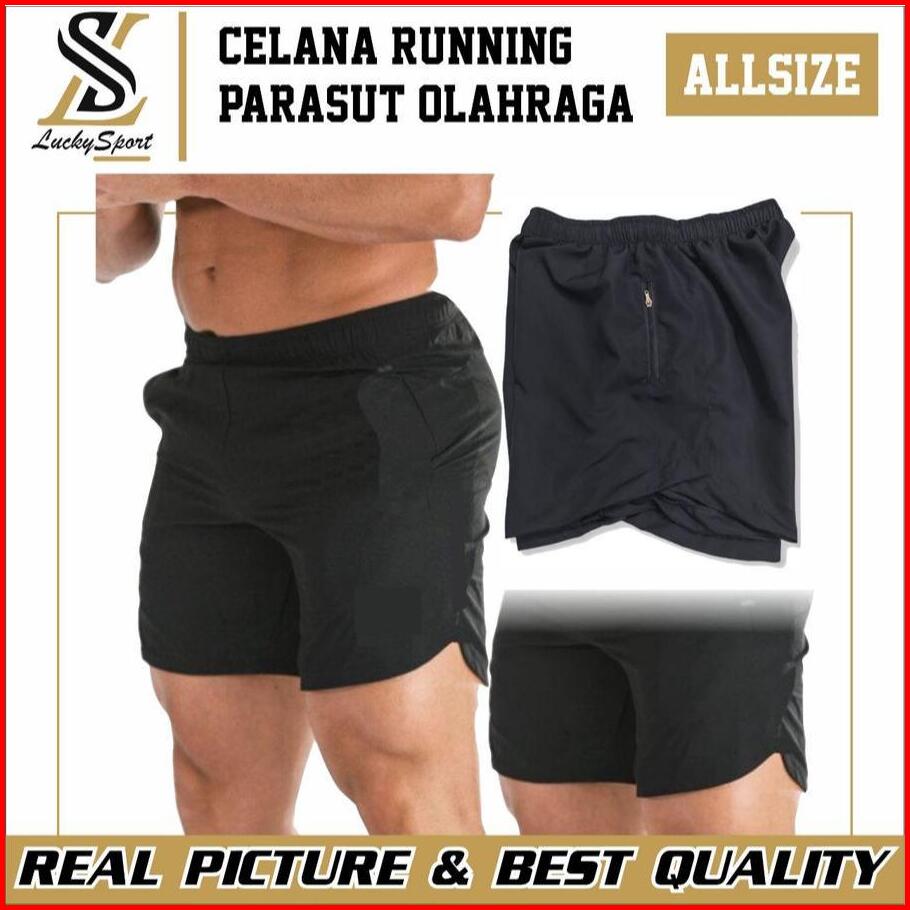 Celana Running Saku Resleting Pria Wanita Bahan Parasut Olahraga Binsik Joging Lari Badminton Sepeda Workout Padel