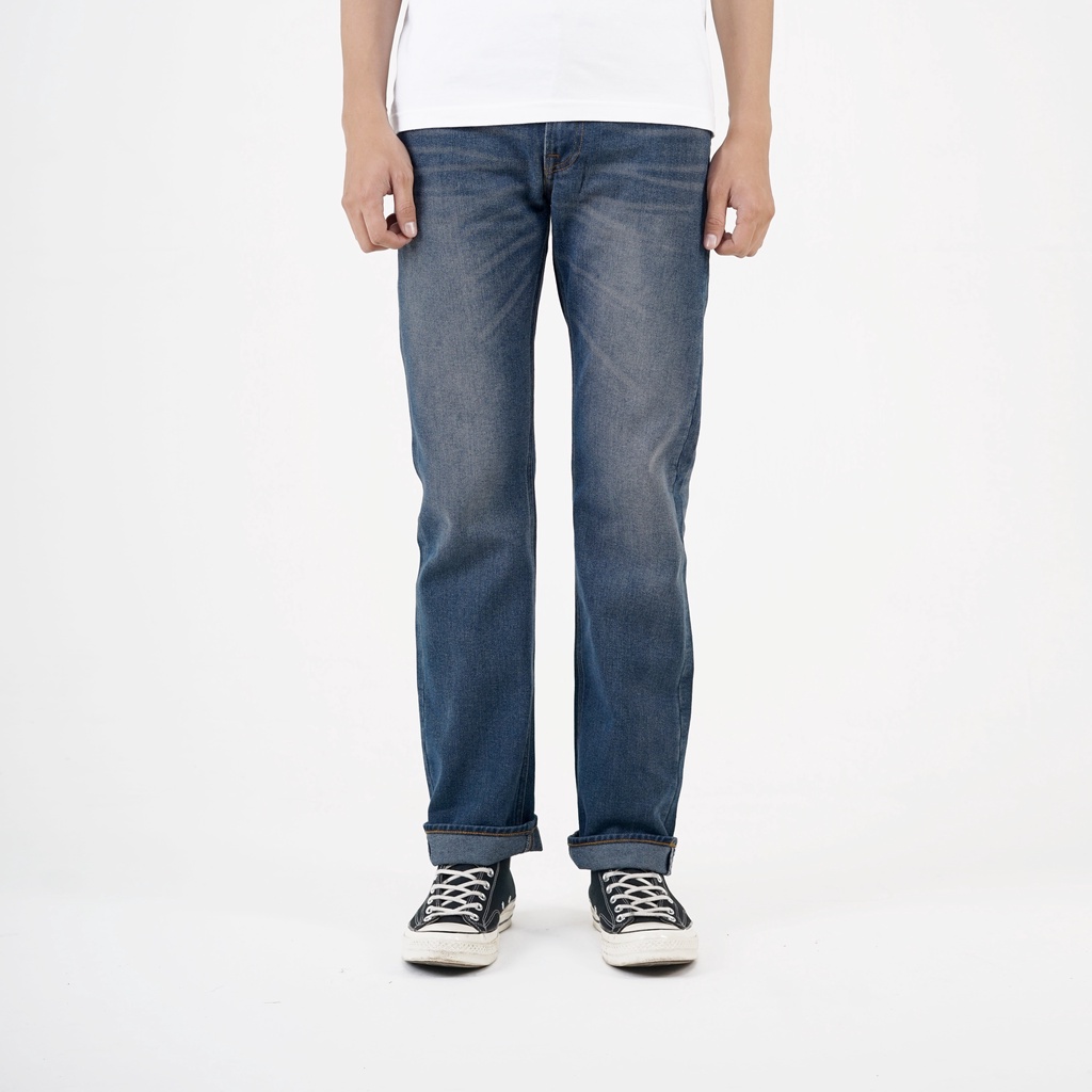 Volkvog Jeans Orleans Celana Panjang Washed Denim Pria Slim Straight Biru
