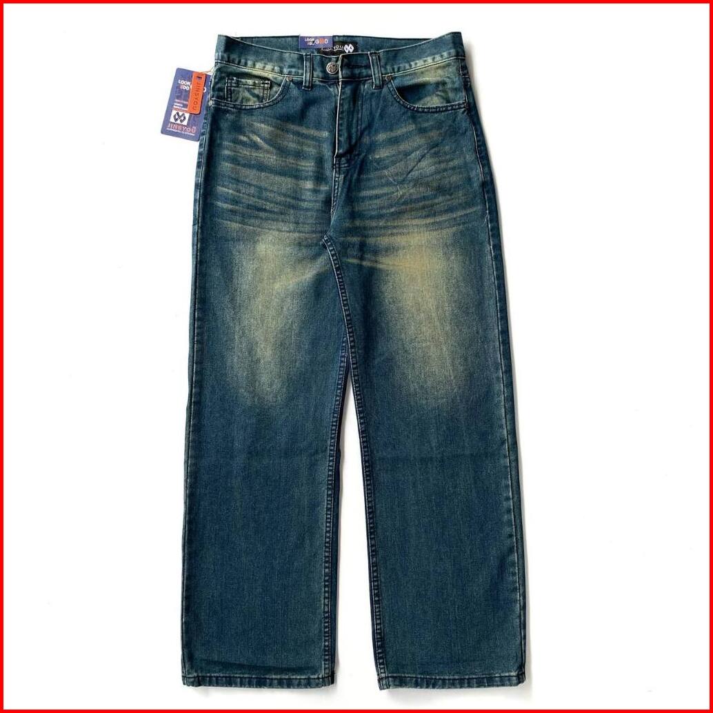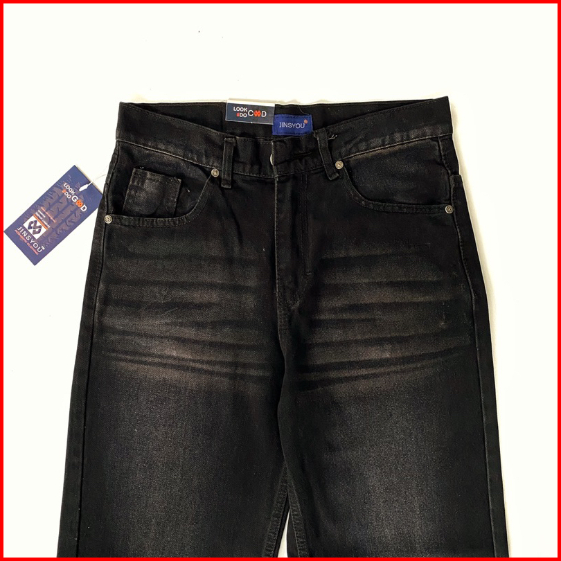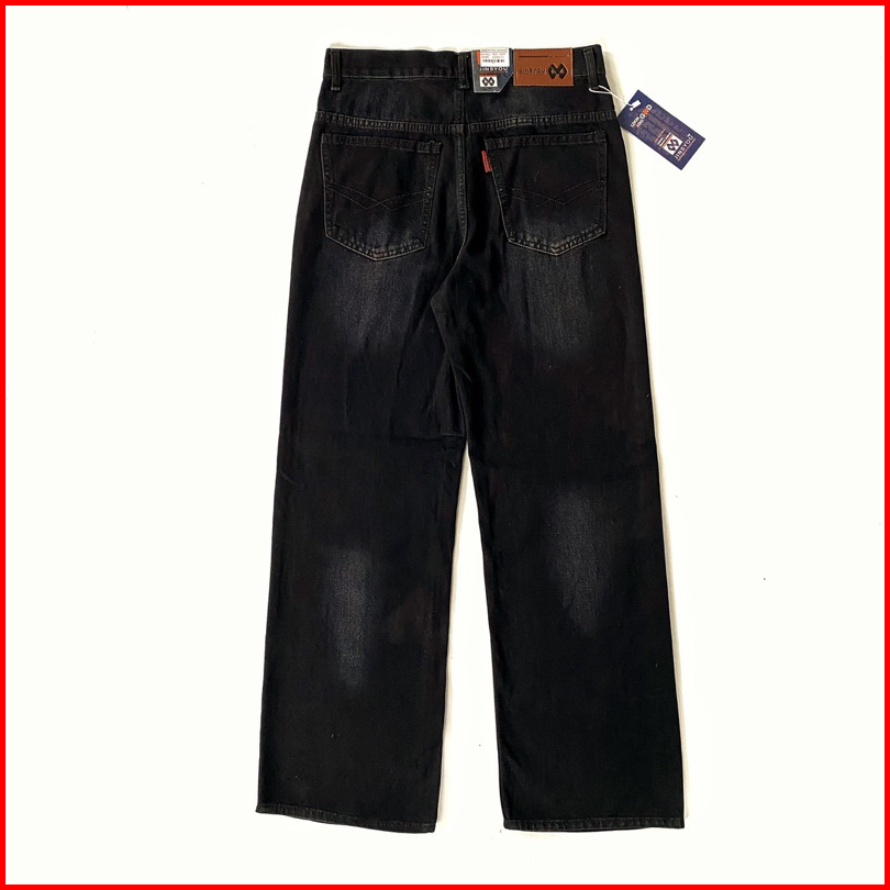 Jinsyou - Celana Jeans Wide Leg Wisker Lebar Gombrang Retro Black Wisker Loose Fit