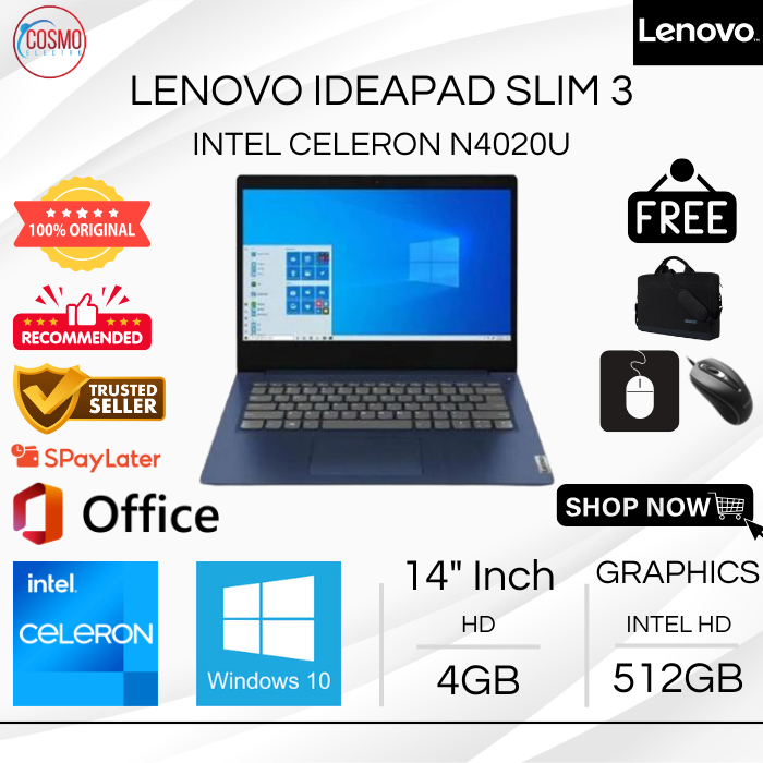 LENOVO IDEAPAD SLIM 3 INTEL CELERON N4020 | RAM 4GB SSD 512GB | 14 INCH WINDOWS 10