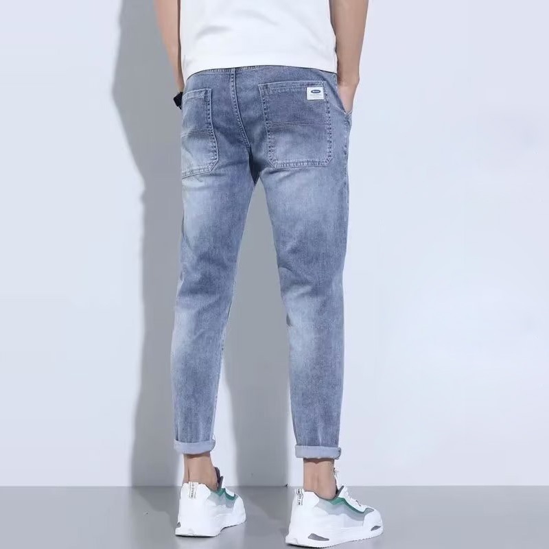 KeyBoy celana panjang pria slim fit stretch jeans celana dewasa cowok pinggang karet casual denim pants korean style