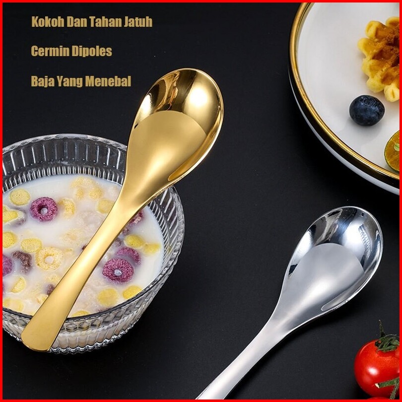 Voova Sendok Cekung Sendok Stainless 304 Sendok Bebek Stainless Tebal Korea Sendok Makan Sendok Es Buah Sendok Bubur