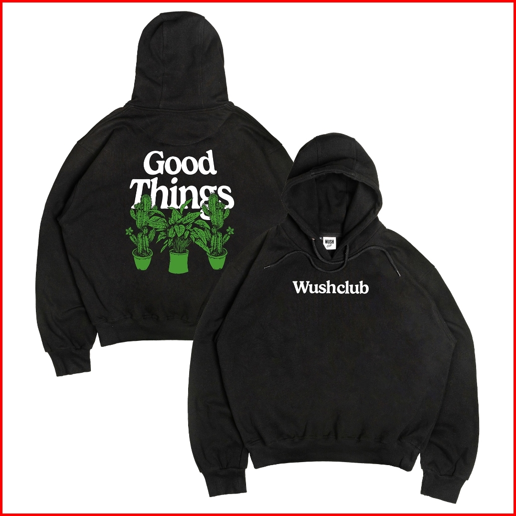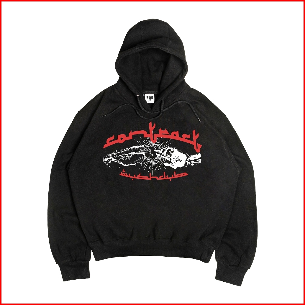 Wush Club Boxy Hoodie Oversize Jaket Distro Pria Wanita Tebal Full Over Sweater Contrac Hitam