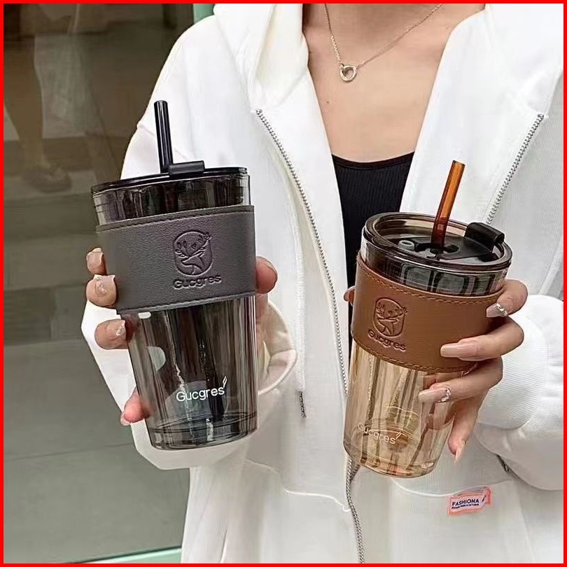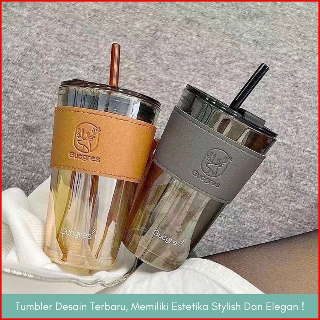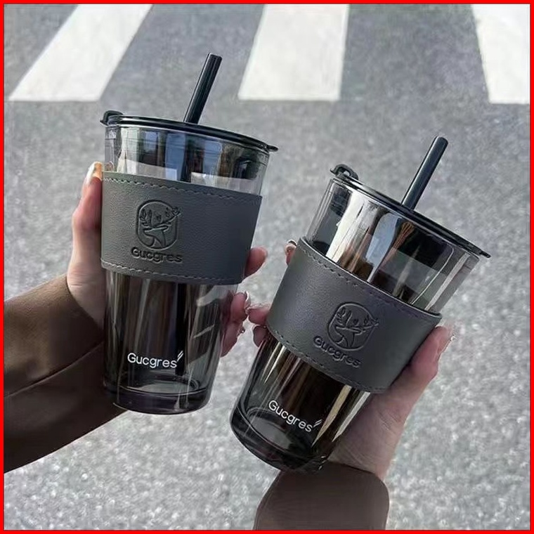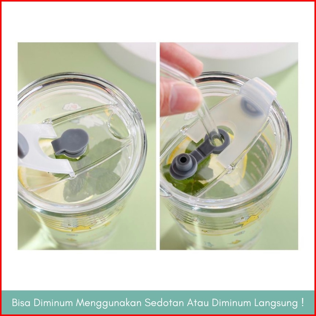 Either.id - Tumbler Gelas Kaca Botol Minum Aesthetic Mug Kopi Cup Glass Dengan Case Dan Sedotan
