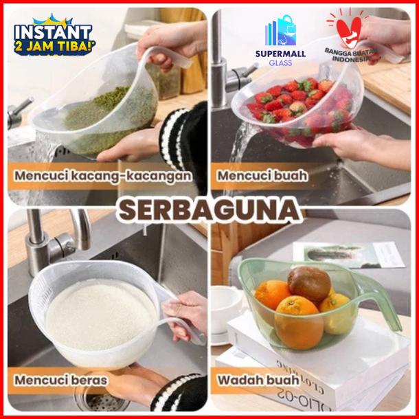 Supermall Saringan Pencuci Beras Transparan Wadah Cuci Beras Sayur Ekstra Besar Food Grade Pp
