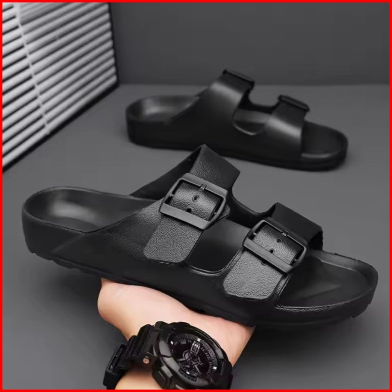 Sandal Selop Pria Sandal Slip On Laki Laki Strap 2 Motif Gesper Sandal Cowok Kekinian Bahan Ingan