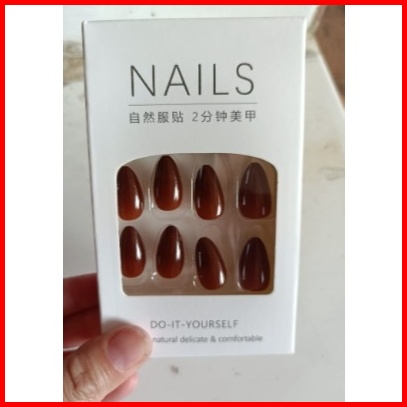 Kuku Palsu Warna Choco Hazelnut Glossy Pendek Lancip Isi 30 Lengkap Dengan Lem